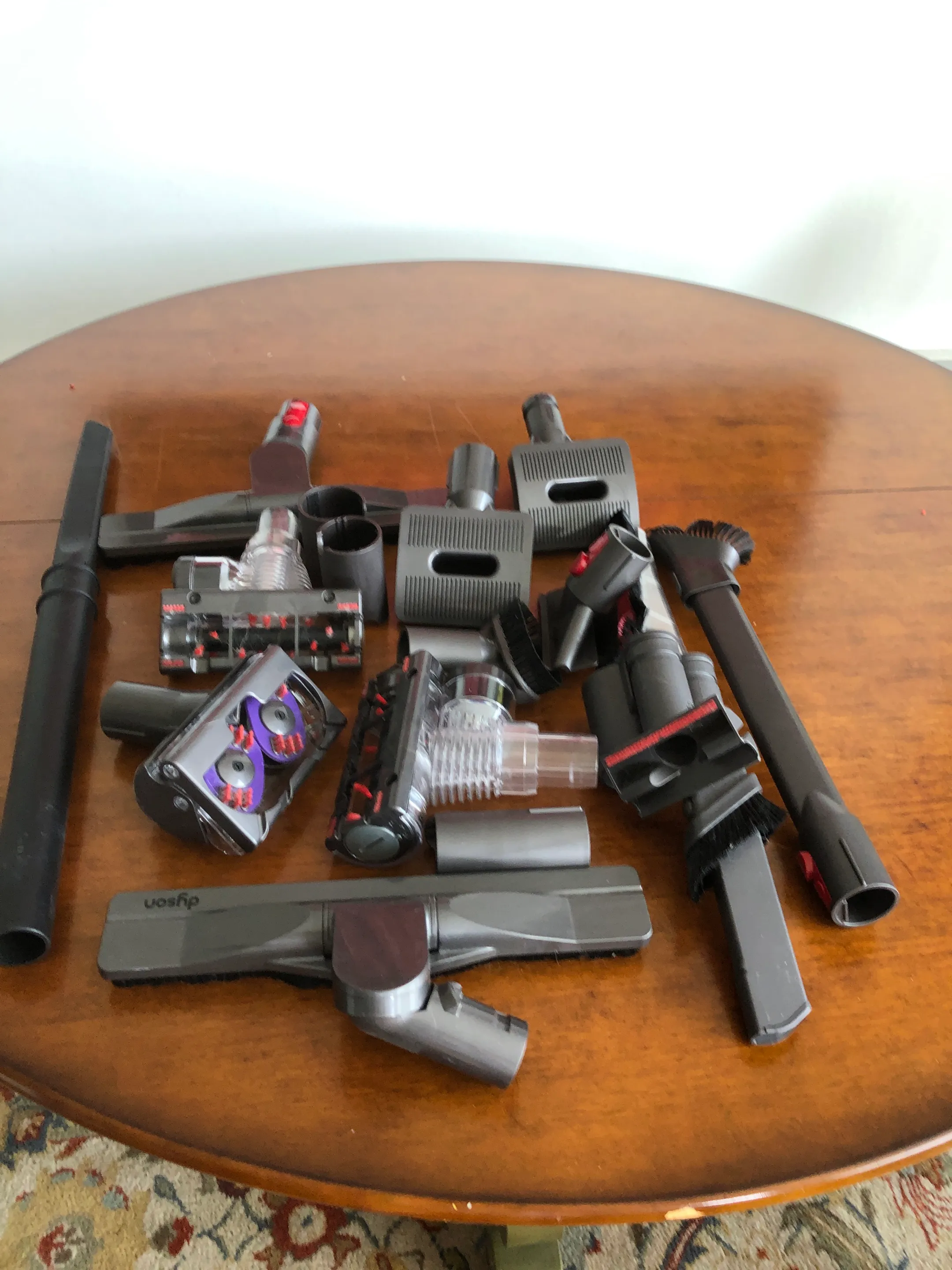 Set of accessories. Features multiple attachments. Great for cleaning hard to reach places in your home. Note that these attachments fit different dyson models. Some new some barely used .