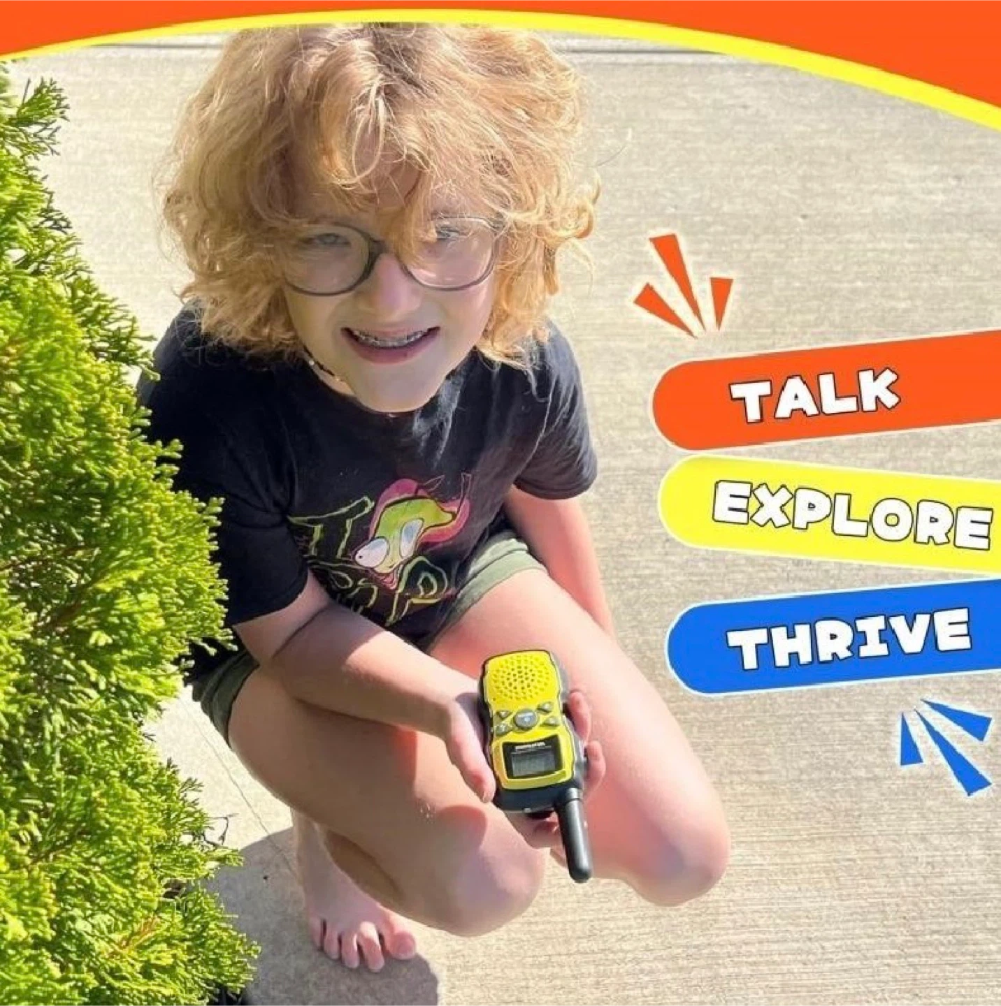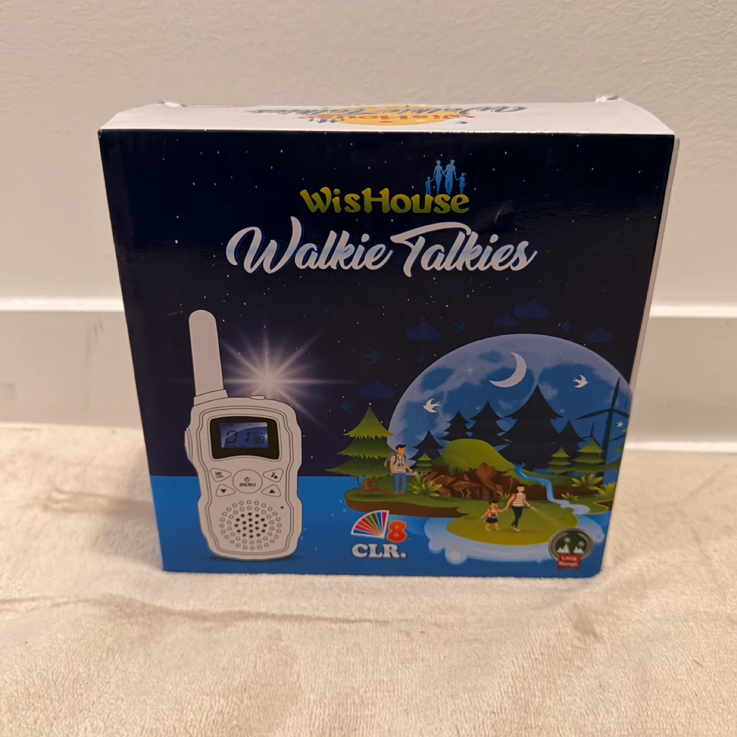 This set includes four WisHouse walkie talkies in pink, blue, green, and yellow. They're perfect for kids' adventures and outdoor play. These walkie talkies are designed for simple communication and exploration.
