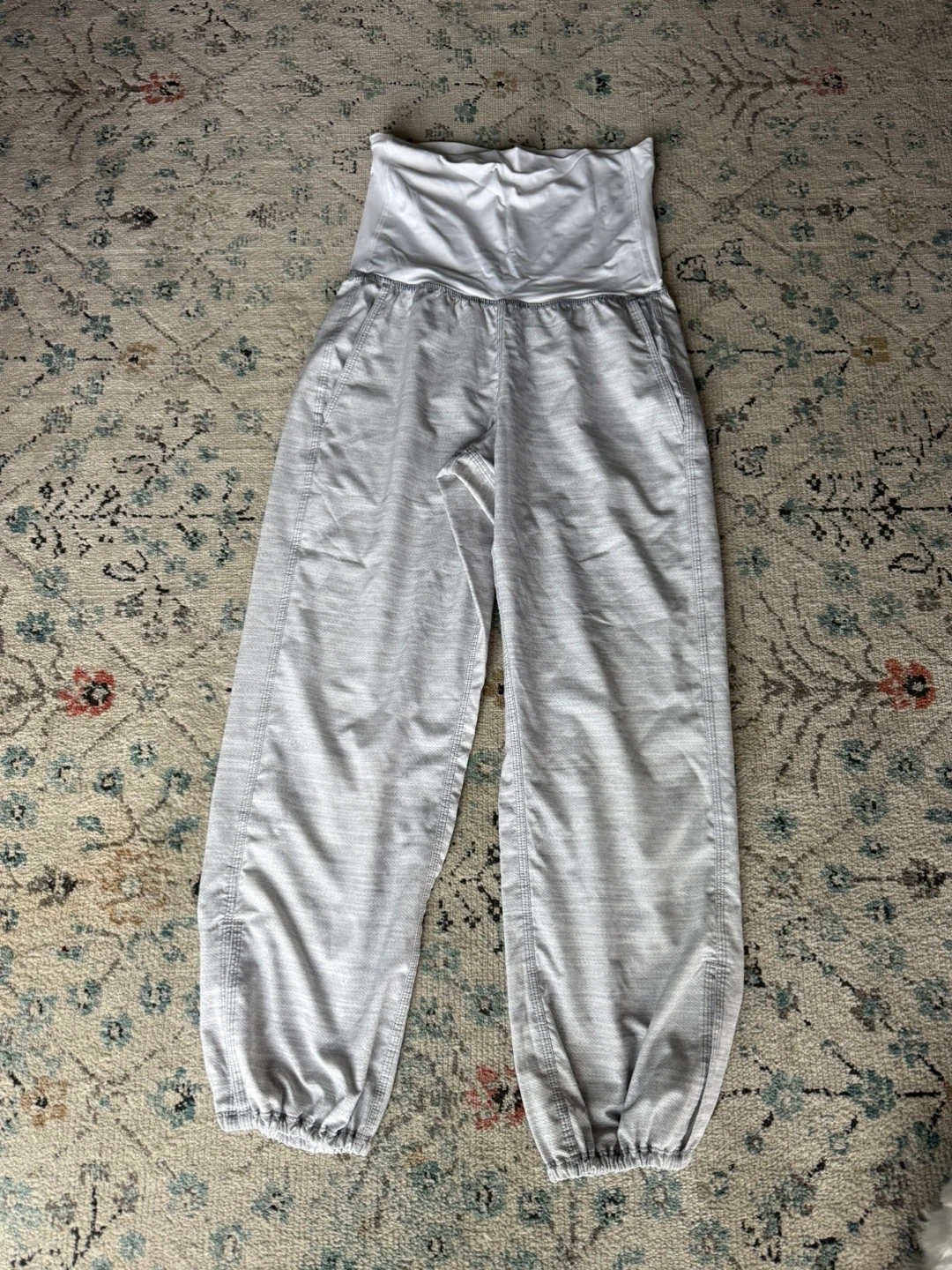 These Lululemon jogger pants are in great condition and ready for a new home! They are a light grey colour and size 2. The material is 86% polyester and 14% spandex, so they are super comfy!