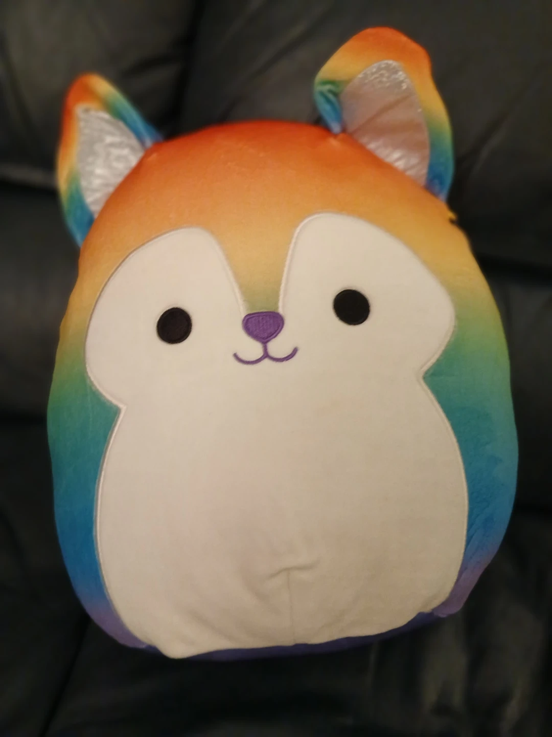 Cute and super soft Squishmallows plush toy named Heath, a colourful rainbow fox. It's made of soft, huggable material and is perfect for snuggling. This plush is a great addition to any Squishmallows collection! Large measuring: 12" - 13"