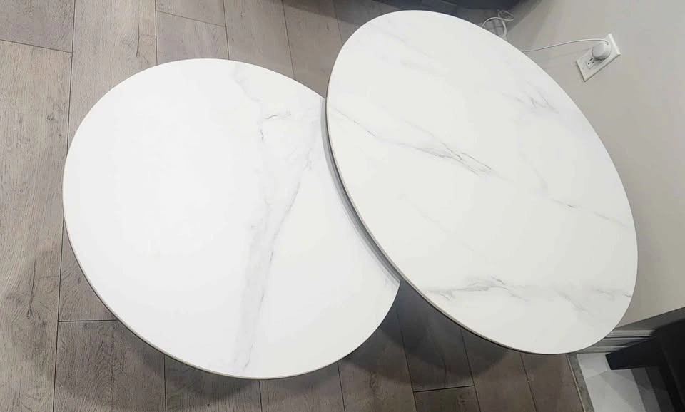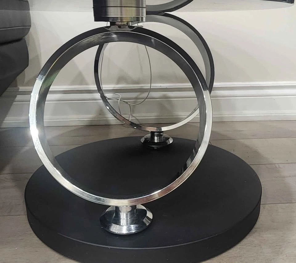 Beautiful modern coffee table with a rotating dual-circle design. A stylish and functional statement piece for any living room.