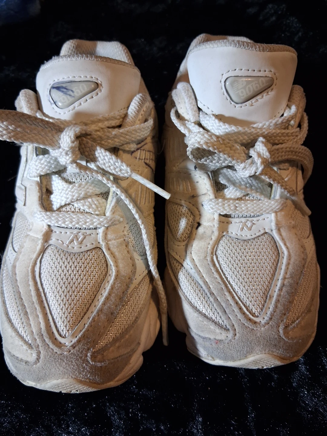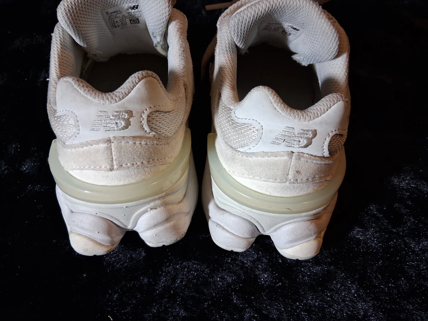 New Balance 9060 boys' sneakers in white. Boys' size 13 US. MFG 02/2024. Made in Vietnam.