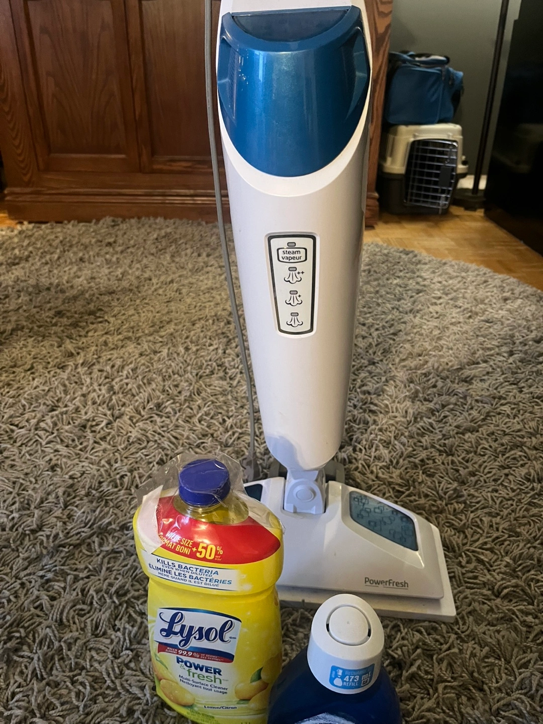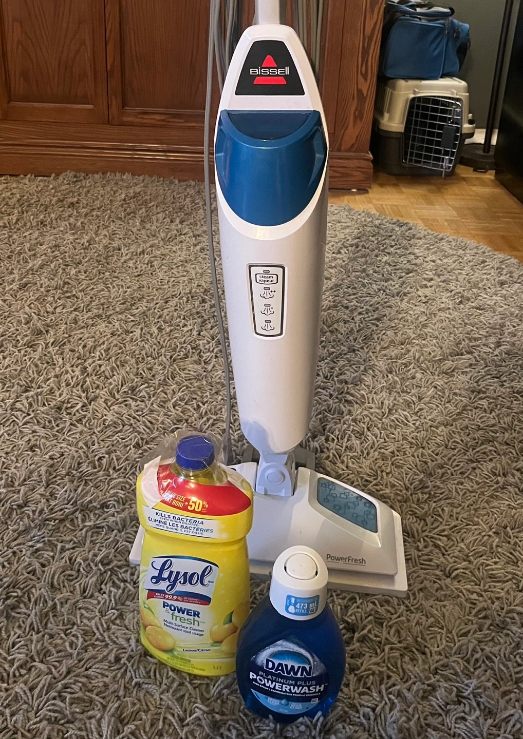 Steam mop. Includes power fresh cleaning solution and a bottle of Dawn Power Wash. does not include pads for steam mop. Everything for $50