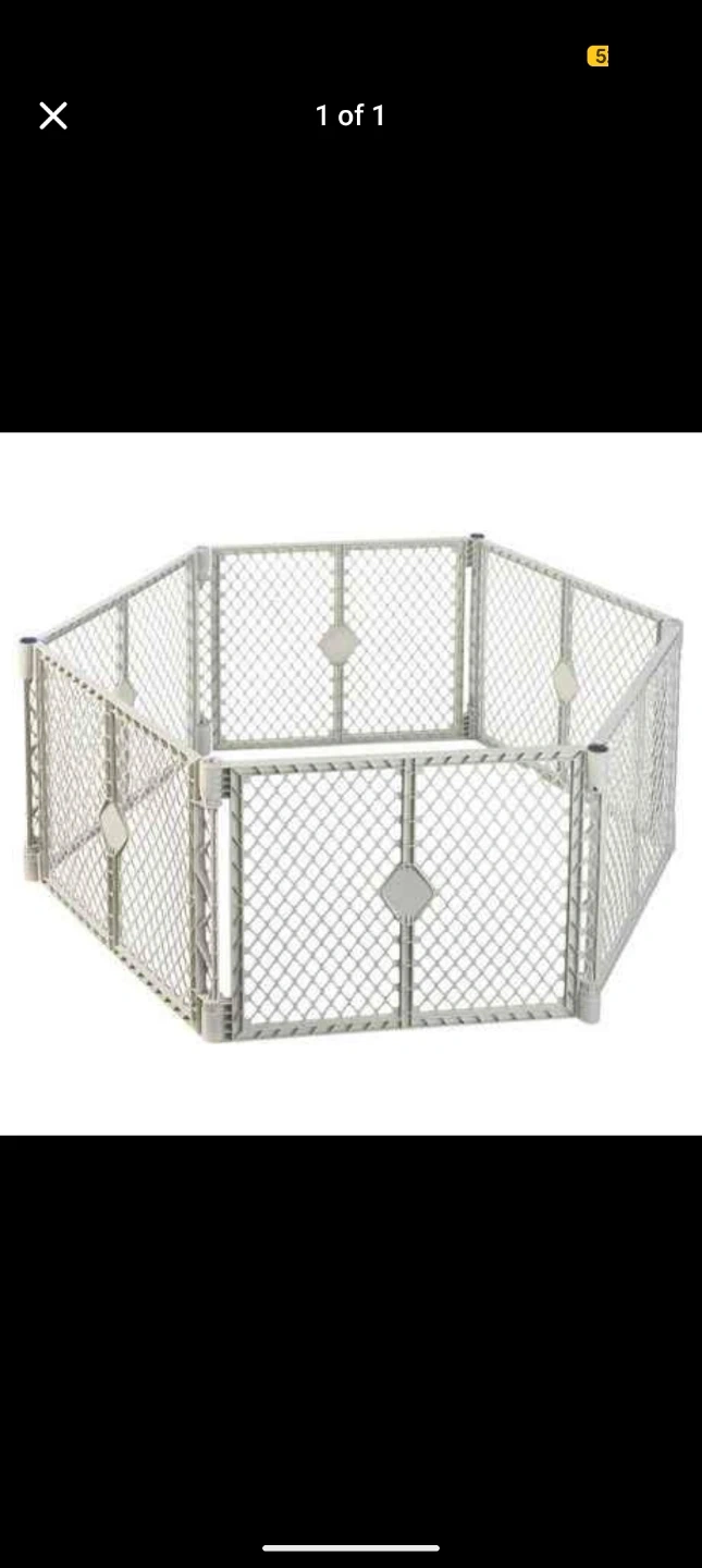 This is a versatile playpen with multiple panels. It's made of durable grey plastic. It's great for keeping pets safe or creating a contained play area for little ones.