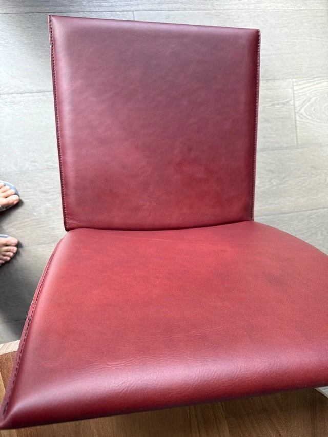 This Crate and Barrel Folio side chair features a sleek, modern design with its striking Merlot leather upholstery. Its clean lines and minimalist frame make it a stylish addition to any dining or living space. This chair is ready to bring a pop of colour and contemporary flair to your home. Brand: Crate and Barrel, Model: Folio Side Chair, Upholstery: Genuine Leather, Colour: Merlot, Style: Modern, Minimalist. These were staging furniture and need to go. Total of 4 available. Each chair is $600. Bundle price is available. Very easy to match your house style and super durable. This chair is looking for a new home. If the ad is up, it's still available!