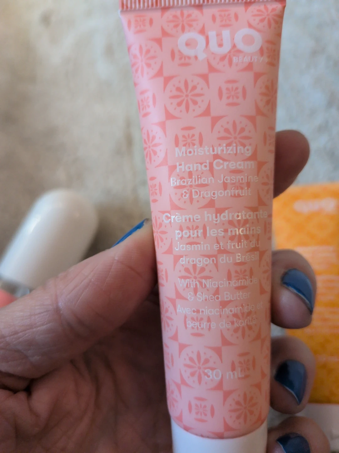 QUO Beauty Moisturizing Hand Cream in Salted Caramel & Vanilla, 30ml. QUO Beauty Fragrance Mist in Salted Caramel & Vanilla, 35ml. QUO Beauty Moisturizing Hand Cream in Brazilian Jasmine & Dragonfruit, 30ml. QUO Beauty Fragrance Mist in Brazilian Jasmine & Dragonfruit, 35ml. These travel-sized sets are great for on-the-go refreshers!