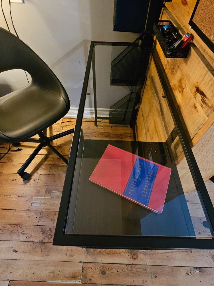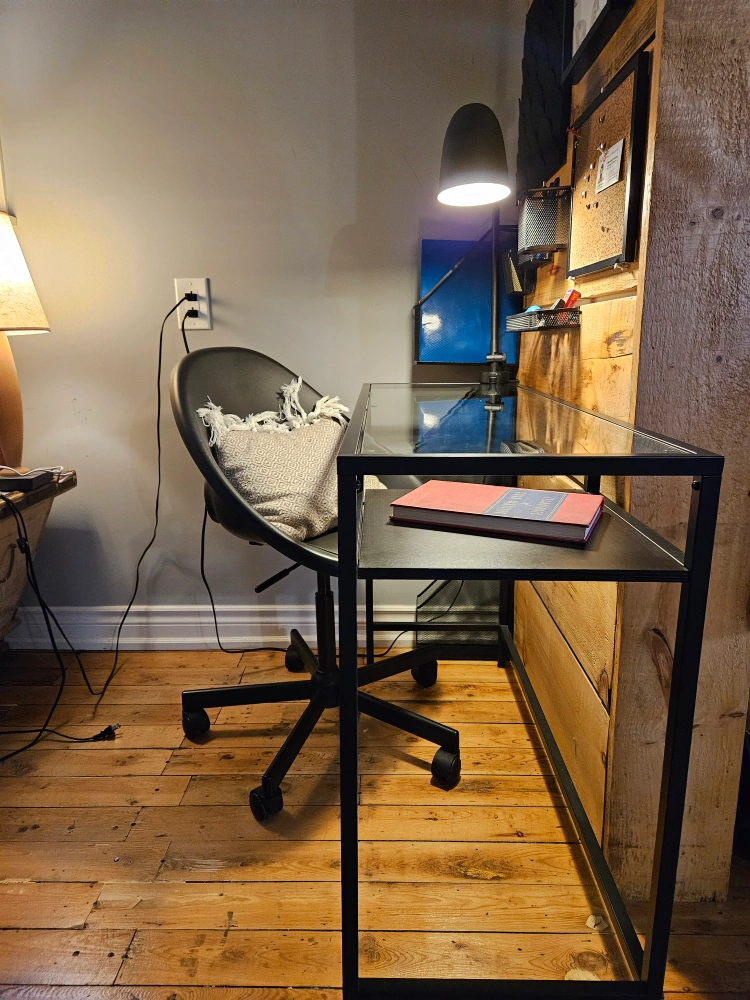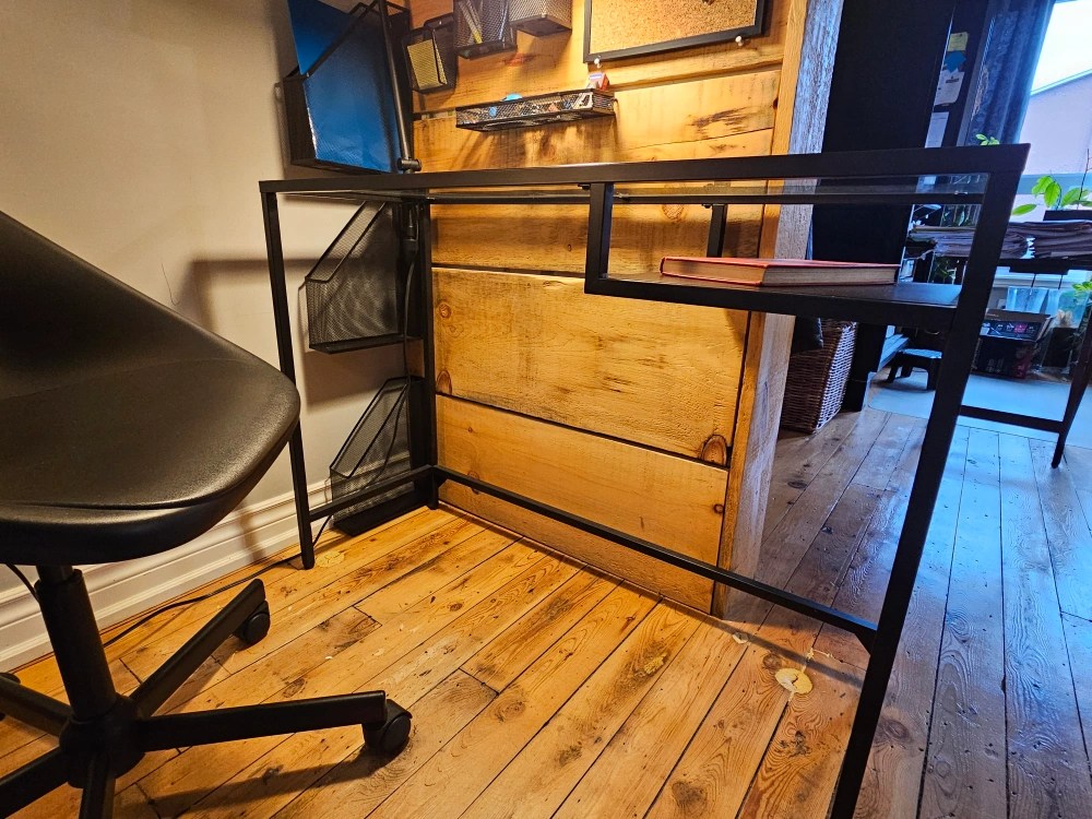 IKEA office set up: desk and chair.
