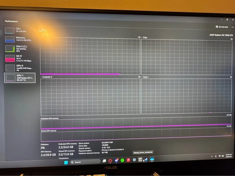 GPU: AMD Radeon RX 7900 XTX (24 GB GDDR6 VRAM, 384-bit memory bus, DirectX 12 Ultimate)