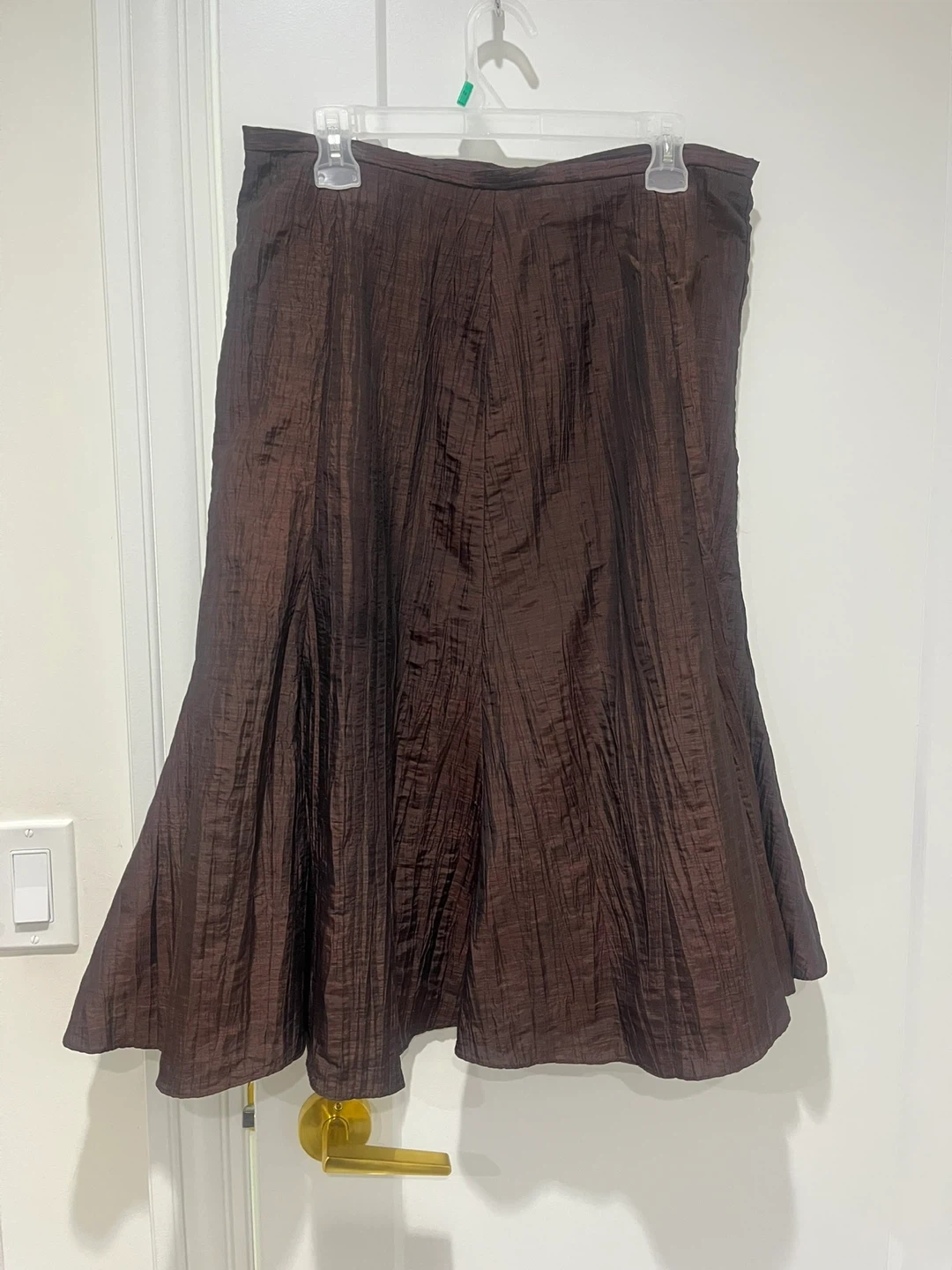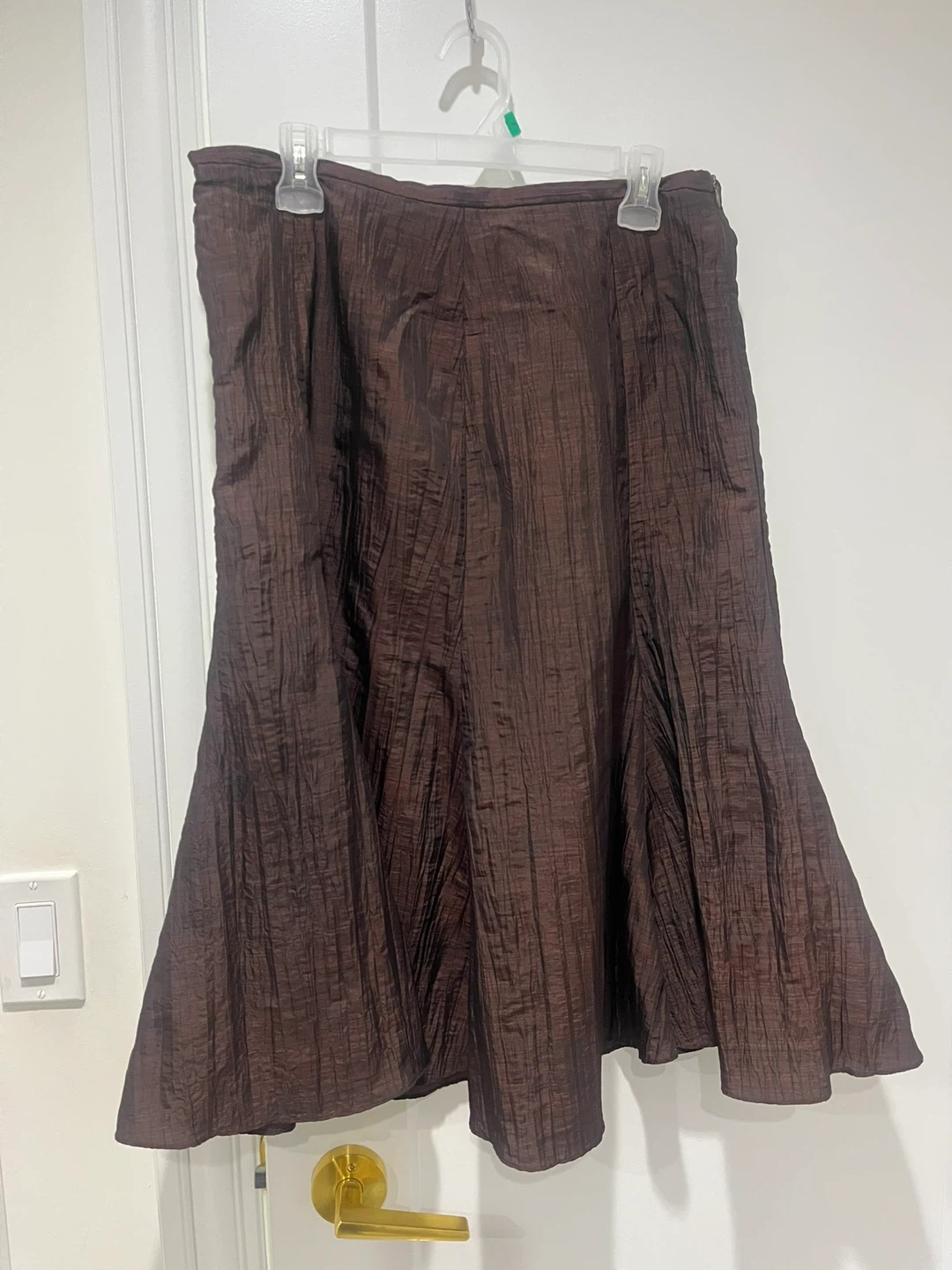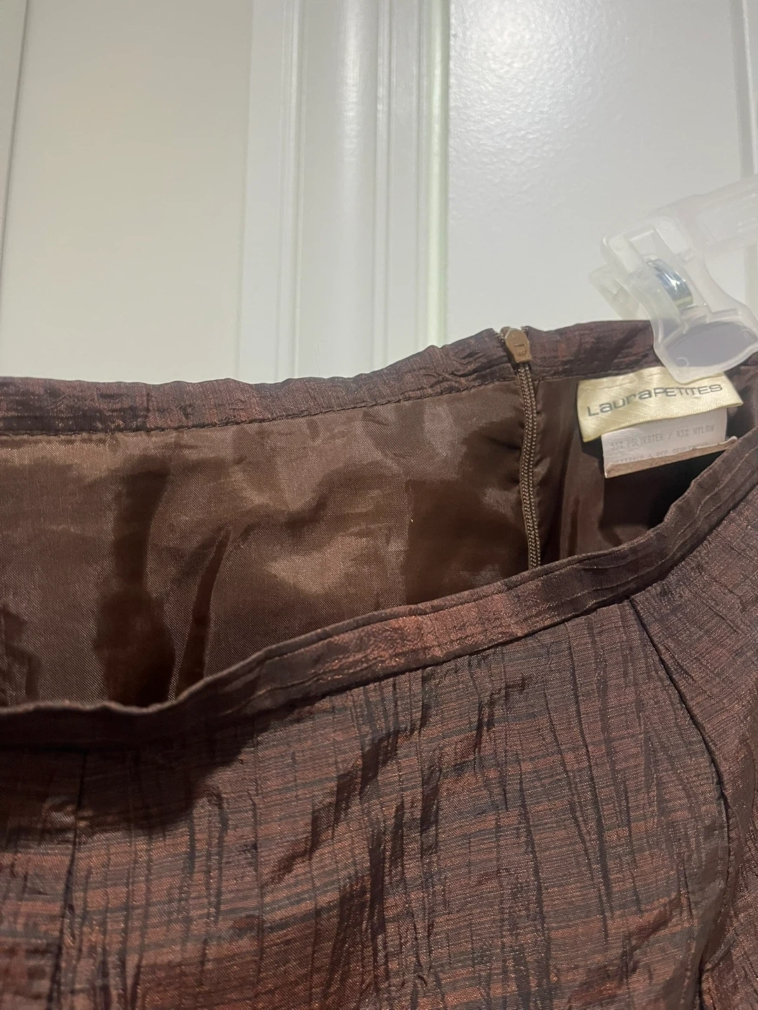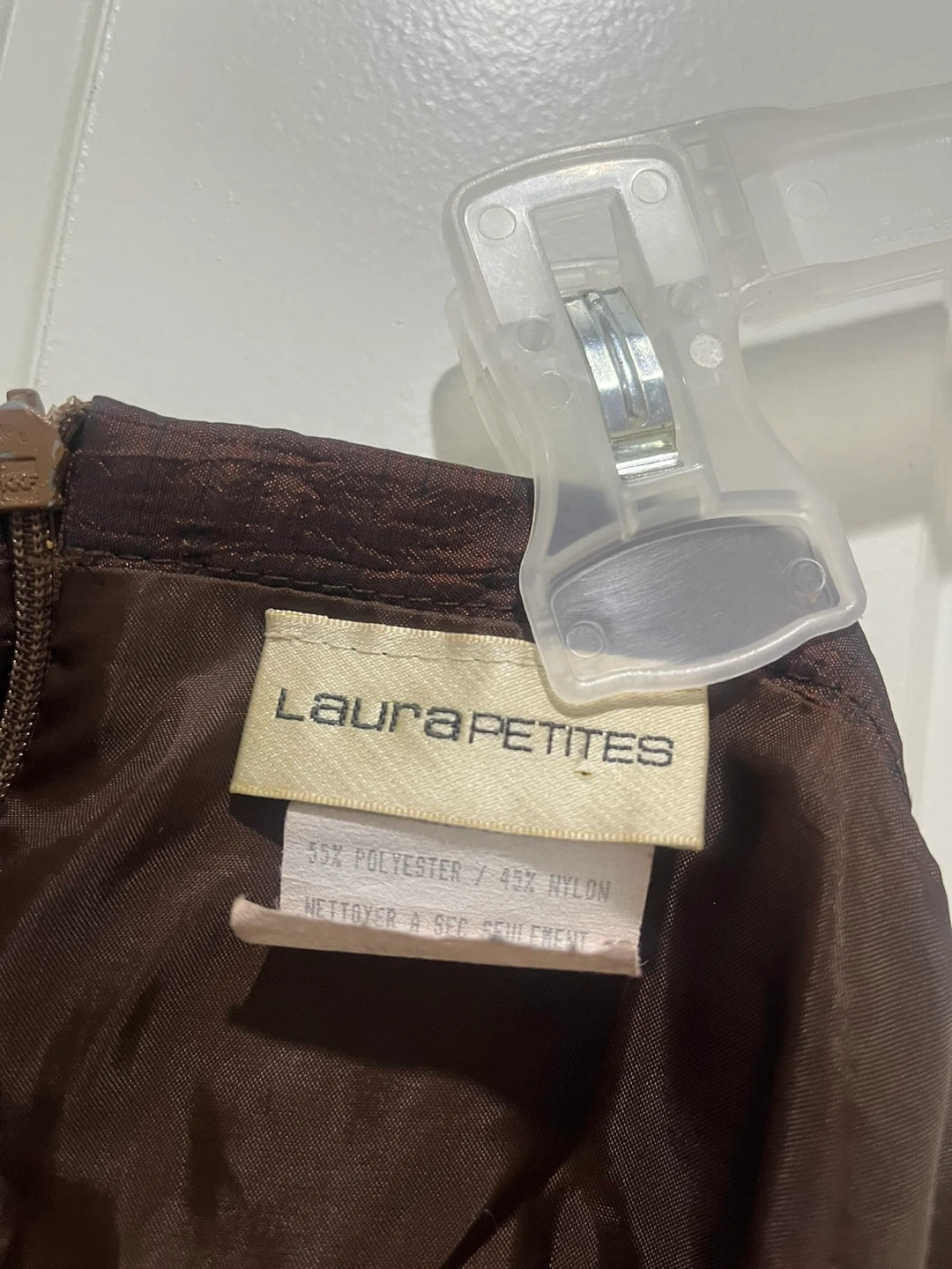 Laura Petites midi skirt in a textured brown fabric. It's made of 55% polyester and 45% nylon. This skirt would be nice for a dressy occasion!