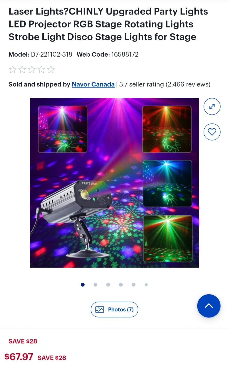 CHINLY LED party lights projector with RGB stage lighting. It features rotating patterns and strobe effects. This light is great for creating a dynamic atmosphere at parties and events!
