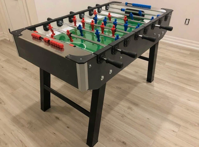 Free delivery to Vaughan, North York, Scarborough, Etobicoke, Mississauga, King City, Richmond Hill, Aurora, Newmarket, and Markham! Installation available for $100. This FABI foosball table is made in Italy and is a Canadian favourite! Features unbreakable tempered glass, ball bearing bushings for smooth play, a 1 inch plywood cabinet, cast iron legs, and telescopic rods. Features: - Anti-rust chrome-effect steel telescopic rods - Wooden body - Cast iron 3" tubular steel legs, easily detachable - 8mm telescopic rods have polyurethane plastic handle grips - Foosball players are molded directly on to the steel bars - Playing field is constructed from 5 mm non reflective, unbreakable tempered glass - Foosball cabinet is constructed of 1 inch plywood with 2 1/2" metal legs Dimensions: 32" W x 56" L x 35" H Boxed Dimensions: 31" W x 56.5" L x 15" H Weight: 150 LBS Condition: New For Sale By: Owner Curbside pick up: Yes Cash accepted: Yes Payment: Cashless payment, Cash accepted