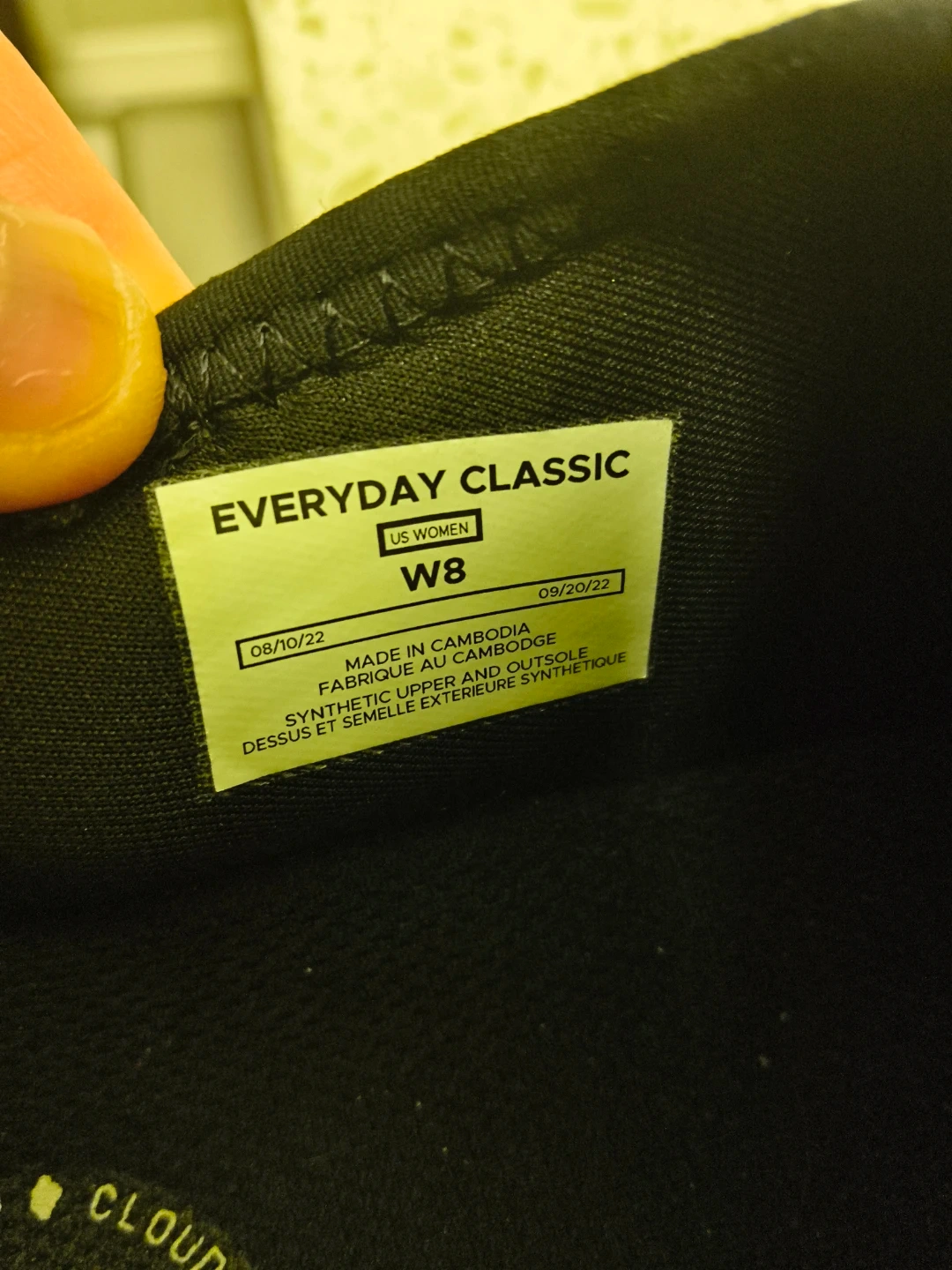 These are Allbirds Everyday Classic women's shoes in a size 8. They're made with a synthetic upper and outsole. Manufactured on September 20, 2022.