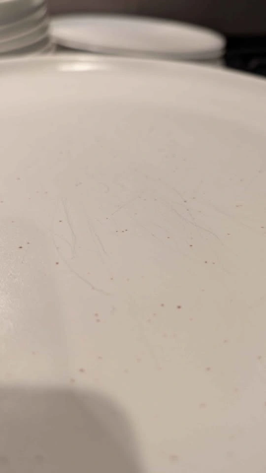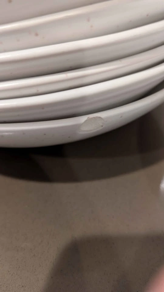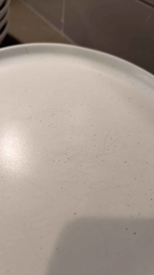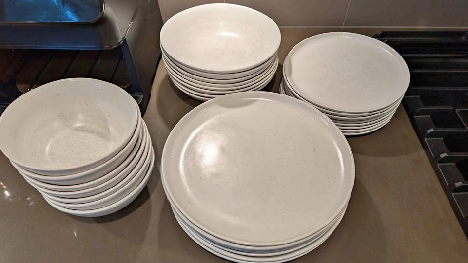 15Used speckled white plates, bowls and pasta bowls from Fable. 7 large plates, 8 salad plates, 8 pasta bowls (one with a chip), 7 cereal bowls.