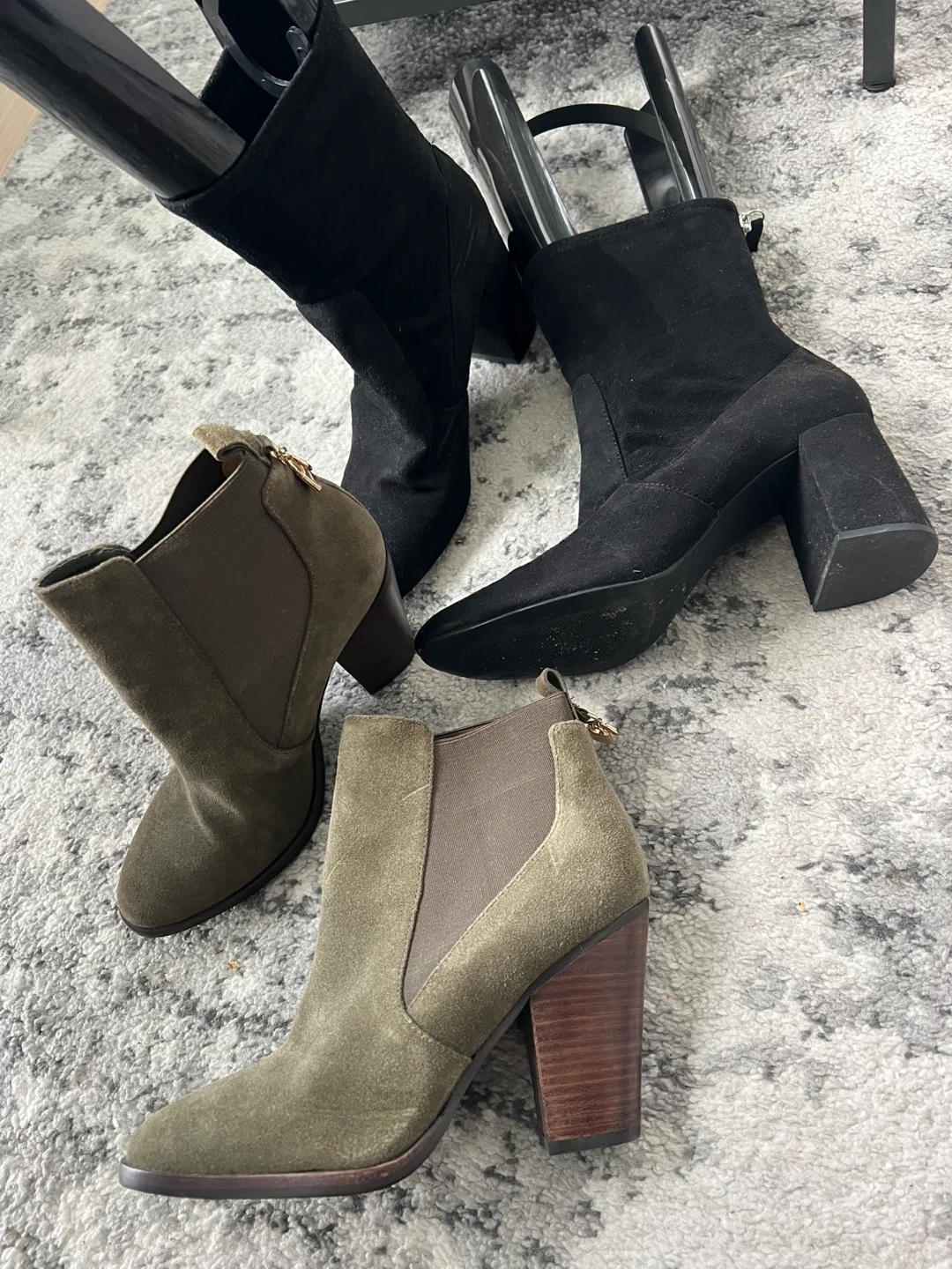92Zara black suede - size 39 (boot holders not included) Michael Kors green suede - size 8.5M Black worn twice, MK never worn $25 each