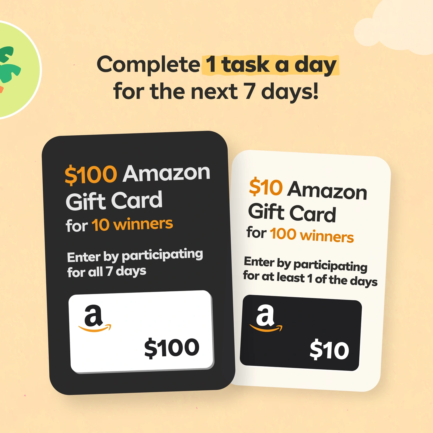 π $10 Amazon Gift Card for 100 winners - Enter by participating for at least 1 of the days