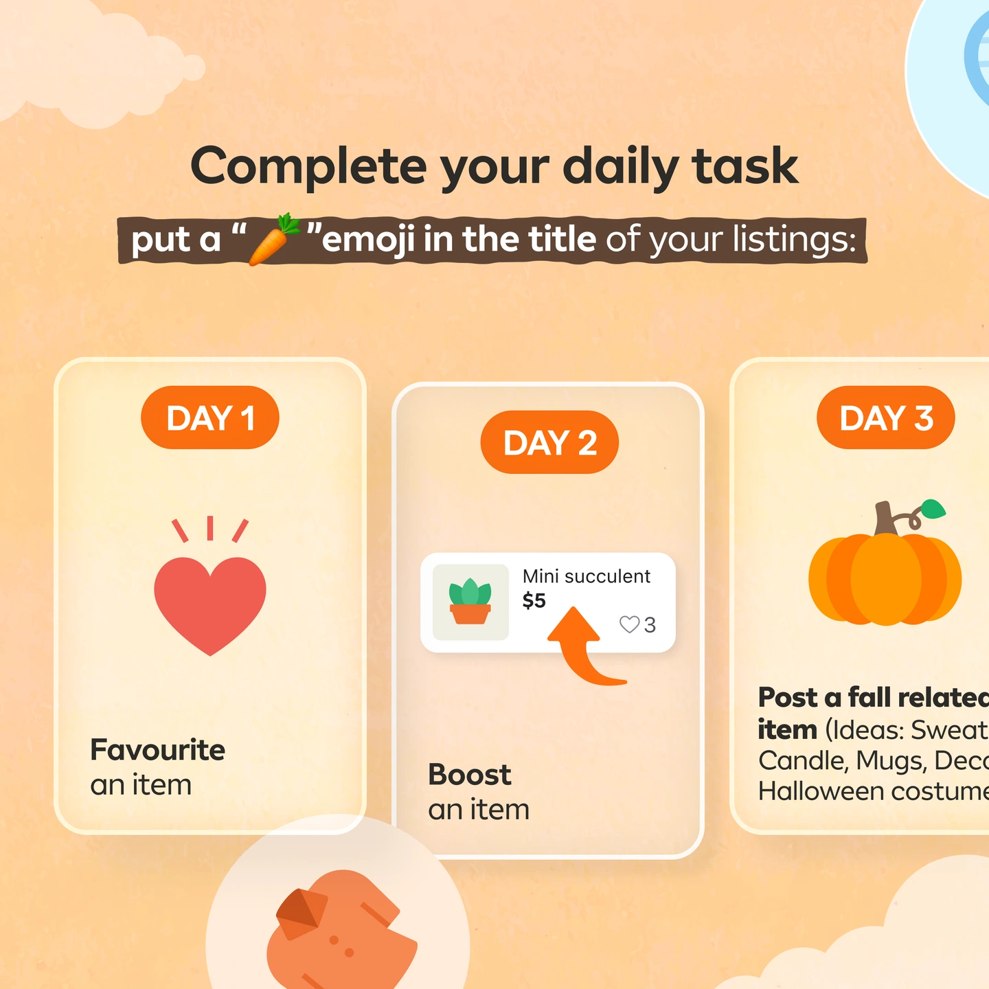 Day 2 - Boost an item (TIP: Go to your "Listings" section and you will find the "Boost" button by each of your listings)