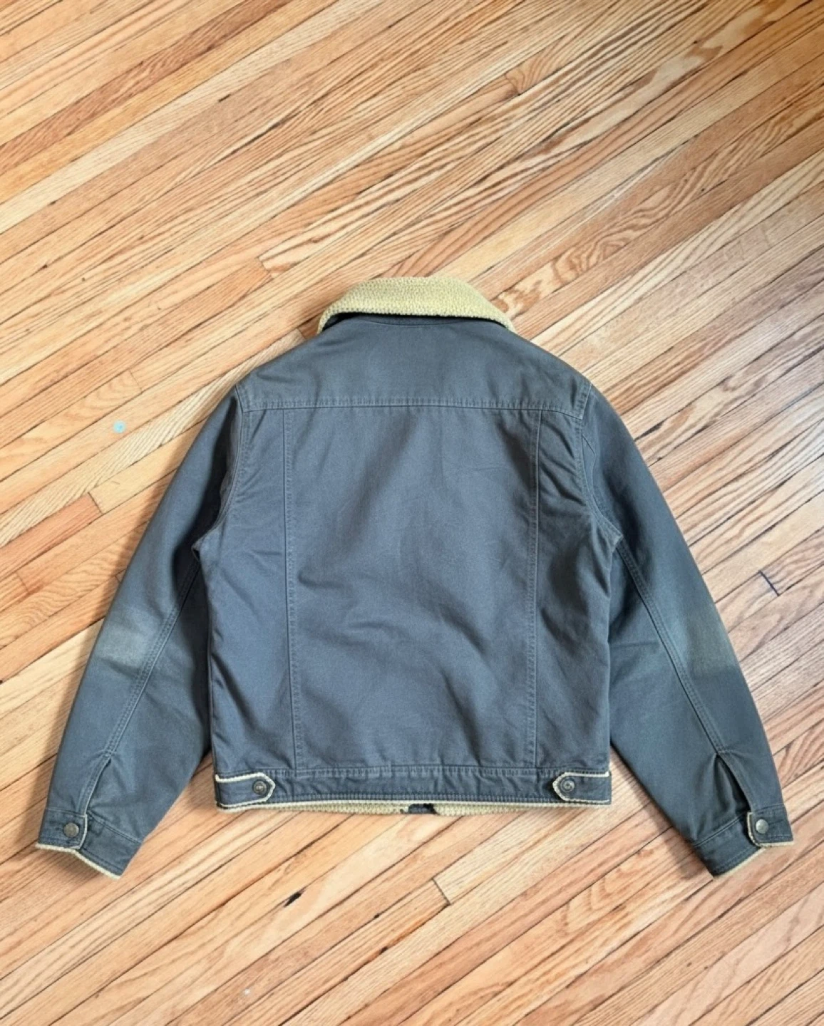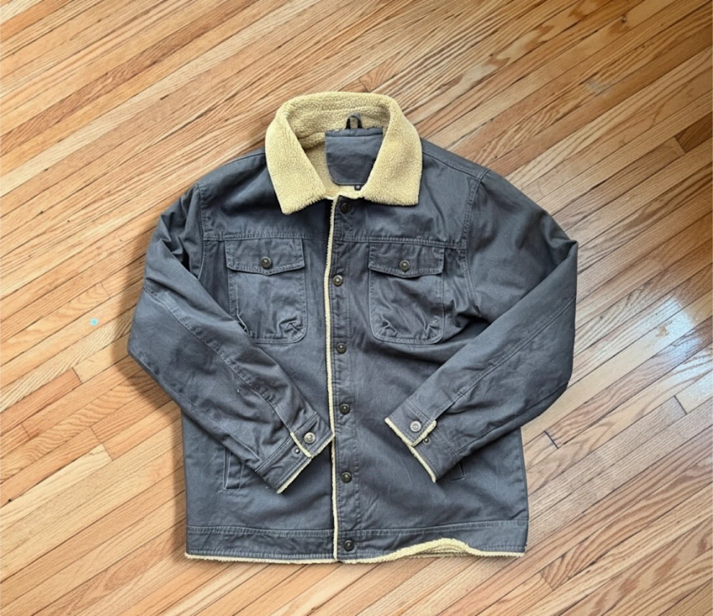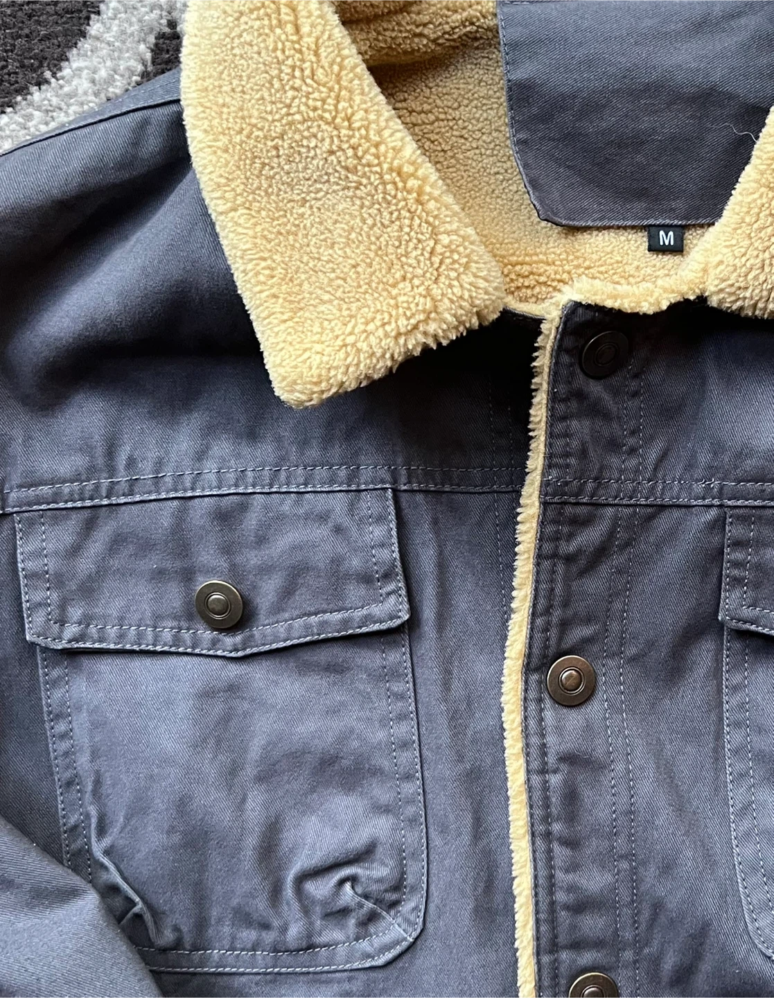 Size M but run a bit bigger Grey Jacket with Brown Sherpa It’s in great condition! Send me your best rates