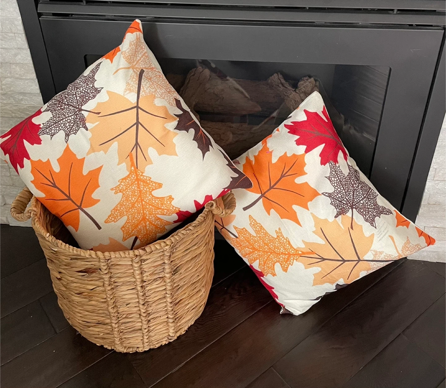 Add a touch of autumn to your home with this lovely throw pillow! It features a colourful fall leaves pattern in shades of red, orange, and brown. Perfect for adding a cozy and festive touch to your living room or bedroom 2pcs