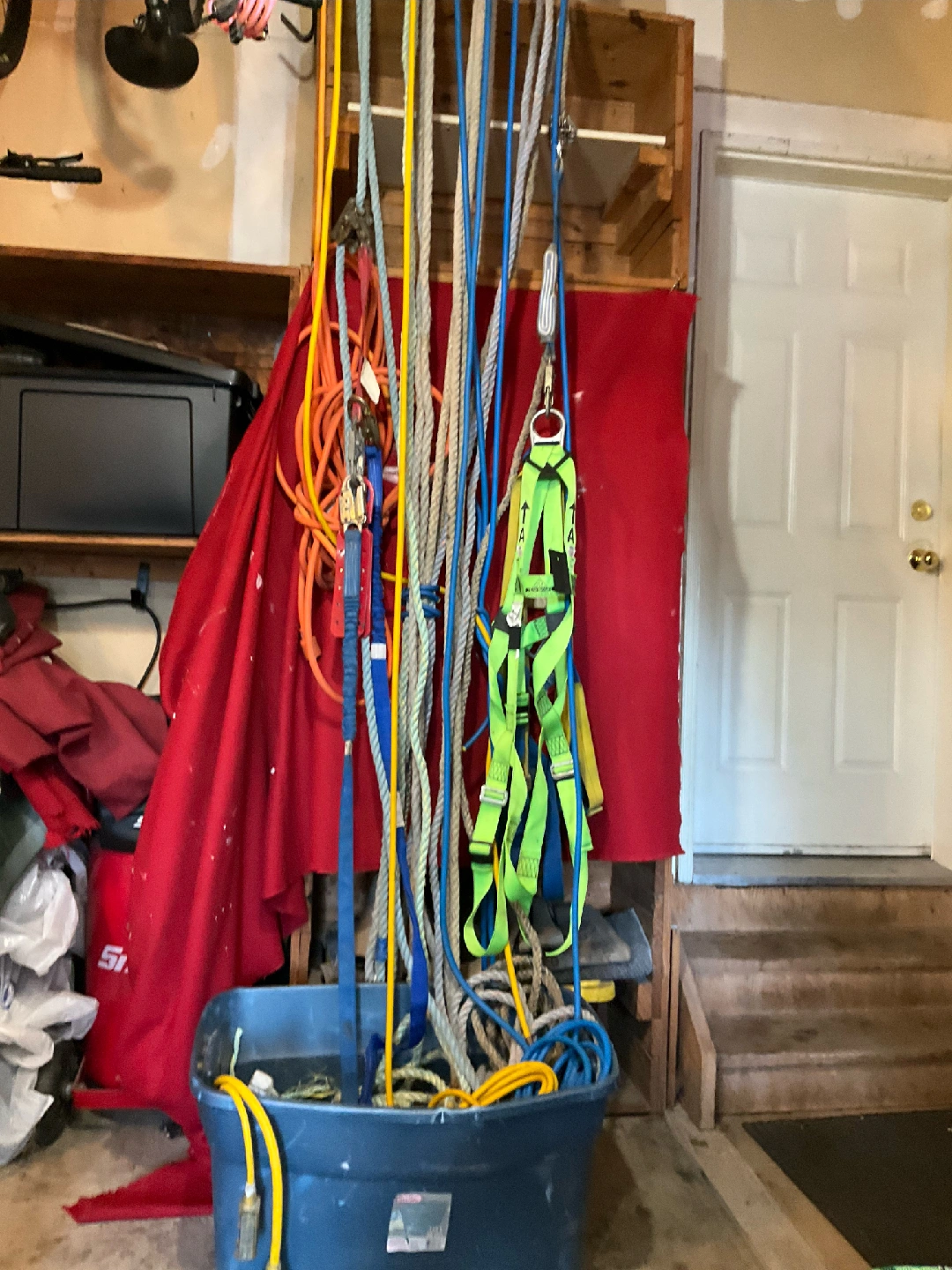 I have 6 50 foot ropes 10 each 2 rope grabs 60 each 3 lanyards 15 each 2 safety harnesses 10 each 3 50 foot airhoses 20beach 1 50 foot extension cord(heavy duty) 20 bucks