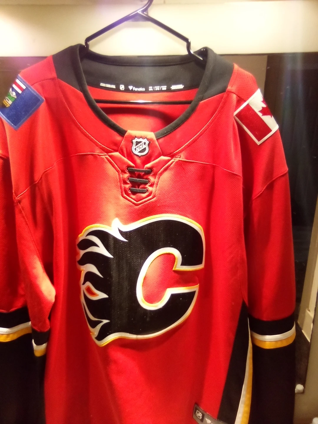 70Selling a Fanatics NHL Calgary Flames jersey in size 2XL. It's in great shape and ready for a new home! Features the classic Flames logo and colours.