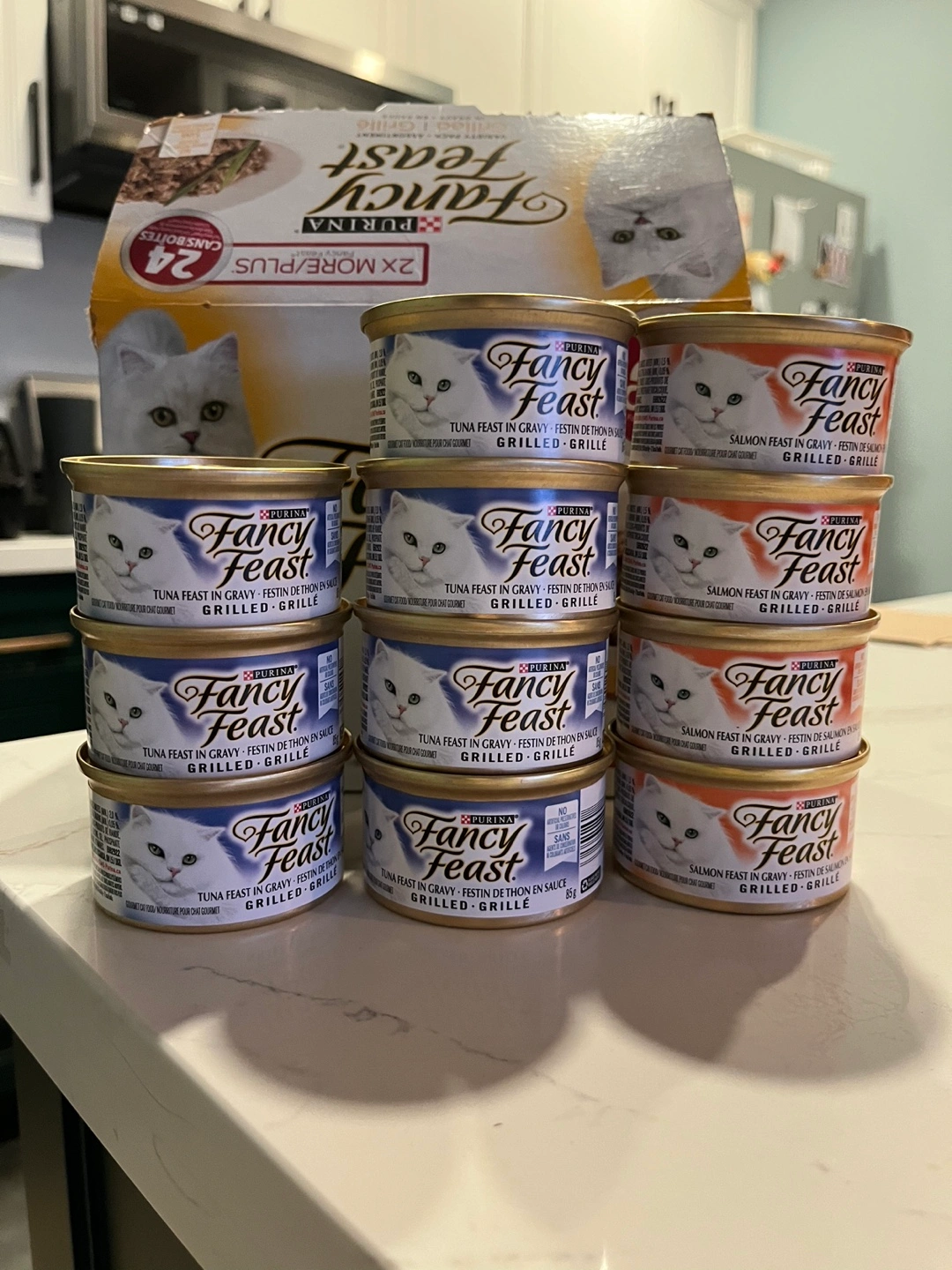 948Selling 11 cans of Fancy Feast cat food: - 7 Grilled tuna feast in gravy - 4 Grilled salmon feast in gravy Expiry: Jul 2026 and Sep 2026 Pick up and cash only please :)