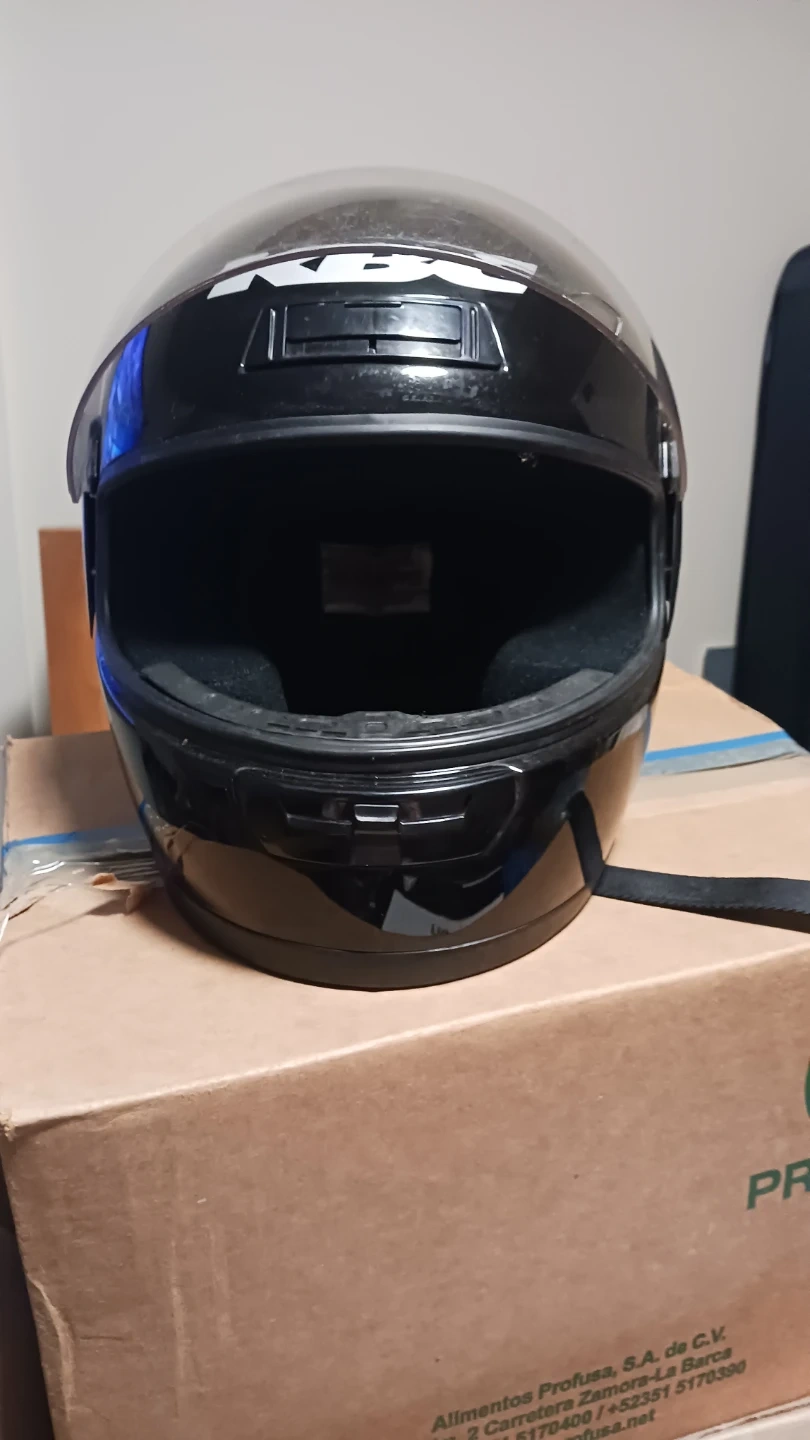 Black full-face motorcycle helmet from KBC. It's a TK-7 model with a clear visor. Comes with a protective helmet bag. Includes adjustable chin strap. Never been in an accident of any type of bumped roughly. Extremely great shape.