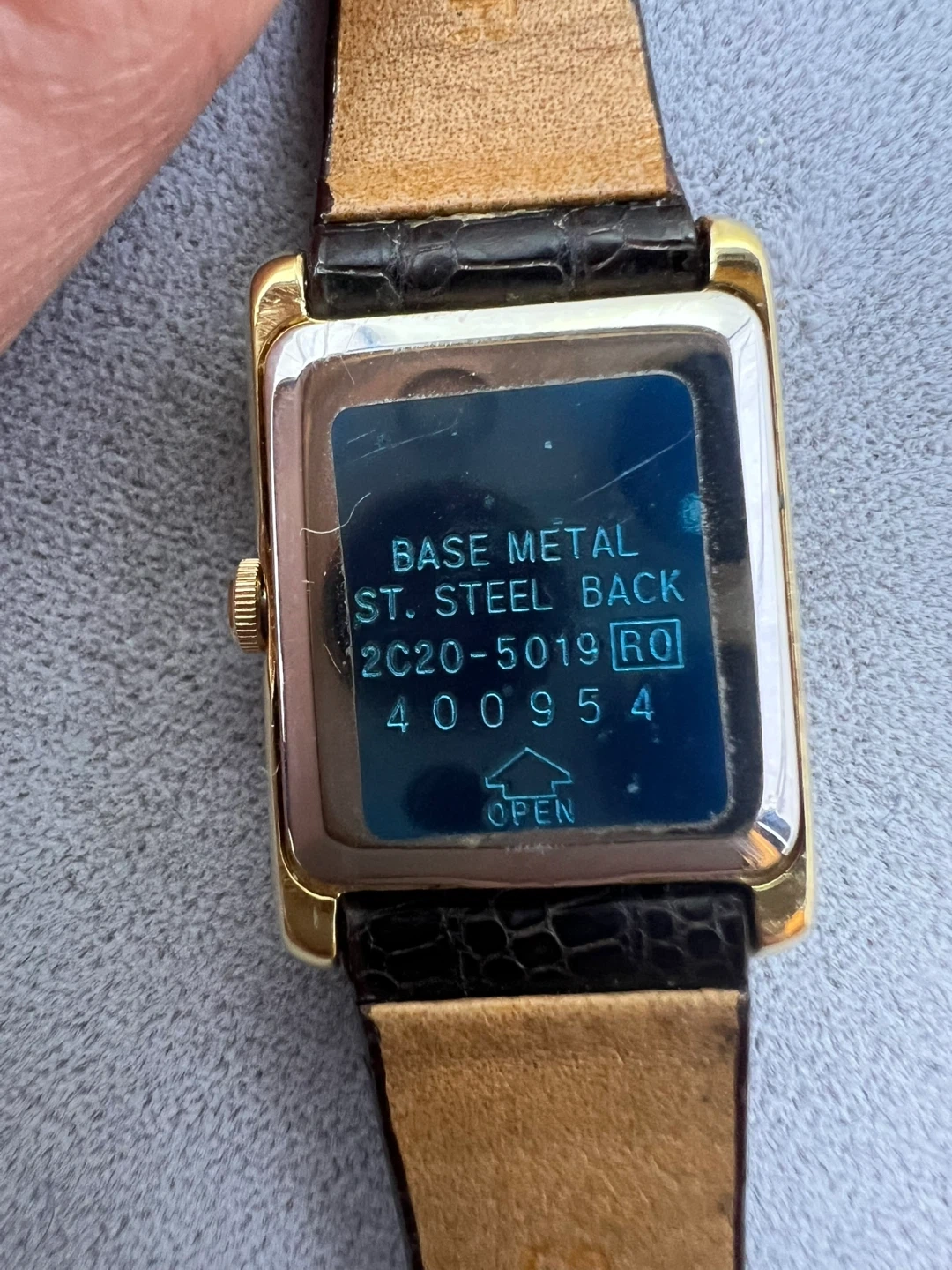 Its rectangular silhouette is often referred to as a "Tank" due to its similarity to the iconic Cartier Tank design