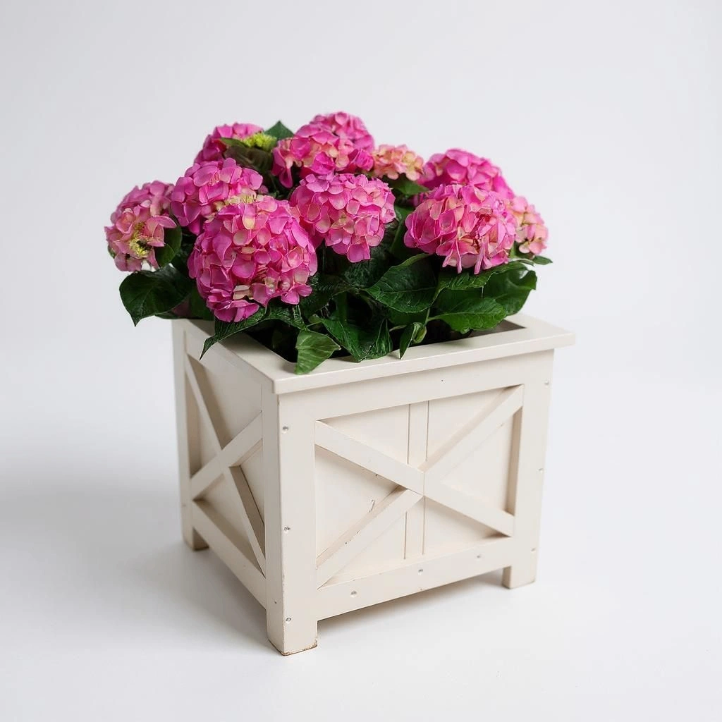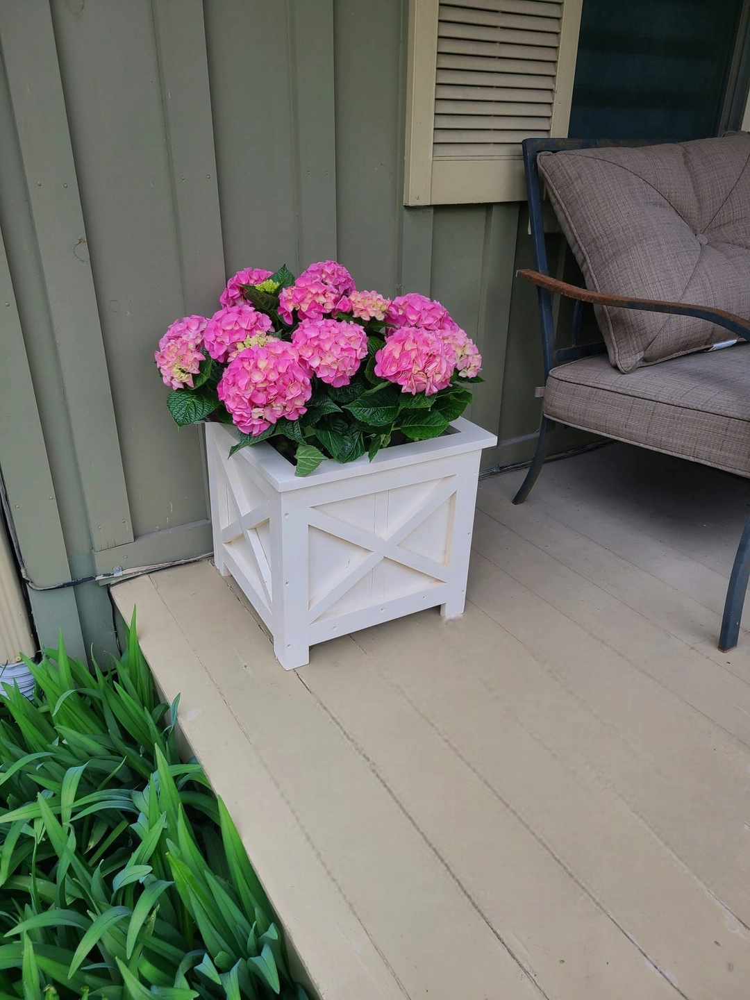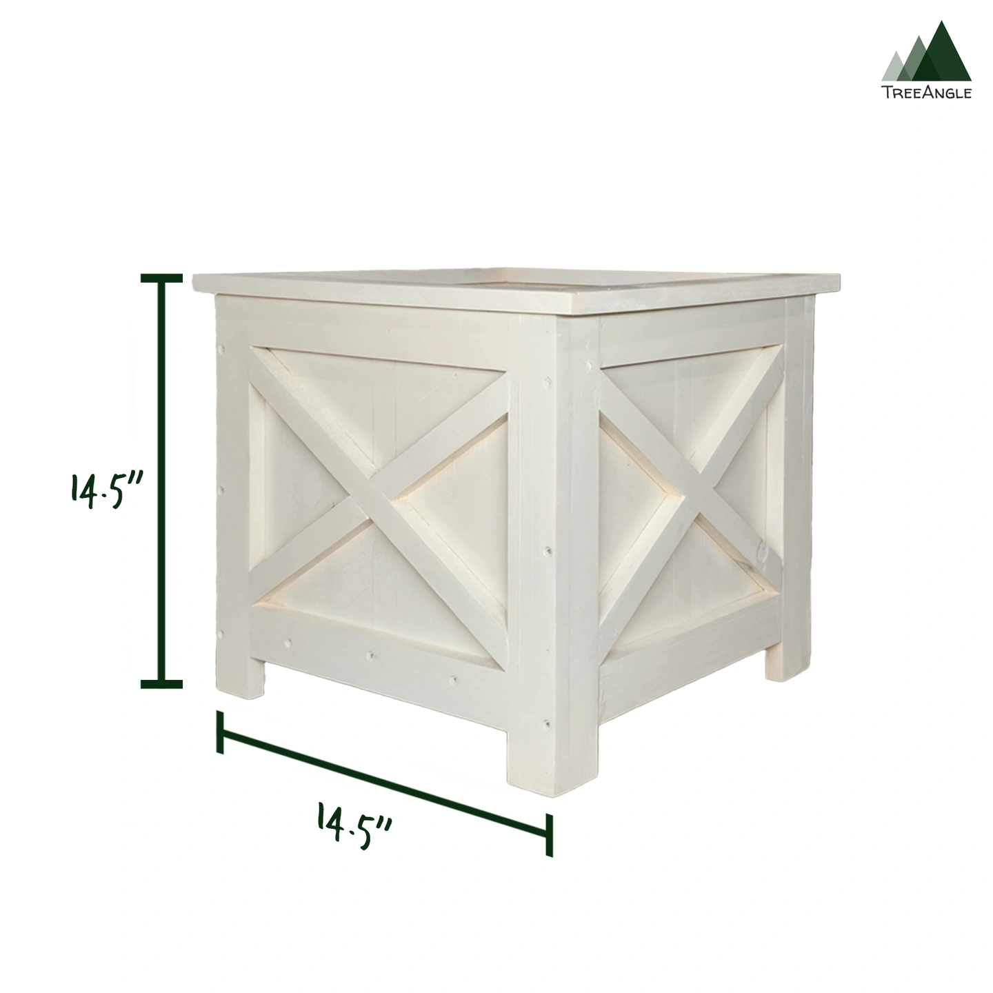 Farmhouse White Wooden Planter Box – Handcrafted Elegance for Your Home Add a Touch of Rustic Charm to Your Space Bring warmth and sophistication to your home with this beautifully handcrafted Farmhouse White Wooden Planter Box. Its versatile design complements both indoor and outdoor settings, making it the perfect addition to your entryway, window side, porch, or deck. Product Features: Wood Construction – Crafted from high-quality wood for durability and timeless appeal. Farmhouse White Finish – Painted in a soft, creamy white that enhances its rustic charm, perfect for any décor style. Spacious Design – Measuring 14.5” x 14.5” x 14.5”, it offers ample space for your favorite plants, flowers, or small trees. Versatile Placement – Ideal for indoor use or on covered outdoor areas like porches and decks. Protect from direct exposure to rain and snow for longevity. Farmhouse White Wooden Planter Box– Features charming cross-panel accents and subtle wood grain variations, making each piece unique. Perfect For: Enhancing your entryway with vibrant flowers or lush greenery Adding a rustic touch to your living room or sunroom Complementing your porch décor for a welcoming outdoor space Displaying potted plants for seasonal charm A Thoughtful Gift for Plant Lovers Looking for the perfect gift? This planter makes an excellent choice for friends and family who enjoy gardening or appreciate handcrafted home décor. Ideal for housewarmings, birthdays, or any special occasion! Care Instructions: Wipe clean with a damp cloth. Keep in a covered area when placed outdoors. For extra protection, consider adding a liner or pot tray. Note: Plants shown in photos are for display purposes only and are not included. Add this farmhouse-inspired planter to your cart and elevate your space with timeless style!
