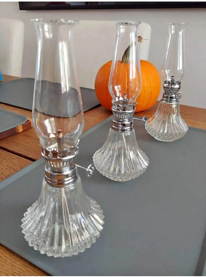 18Illuminate your space with these charming Farms Lamplight oil lamps, each standing approximately 9 inches tall and featuring a clear glass base and chimney. These used lamps add a touch of vintage elegance to any room, providing a soft, ambient glow. There are three in total for $60. Pickup in Bolton.
