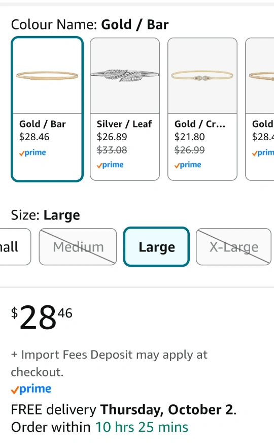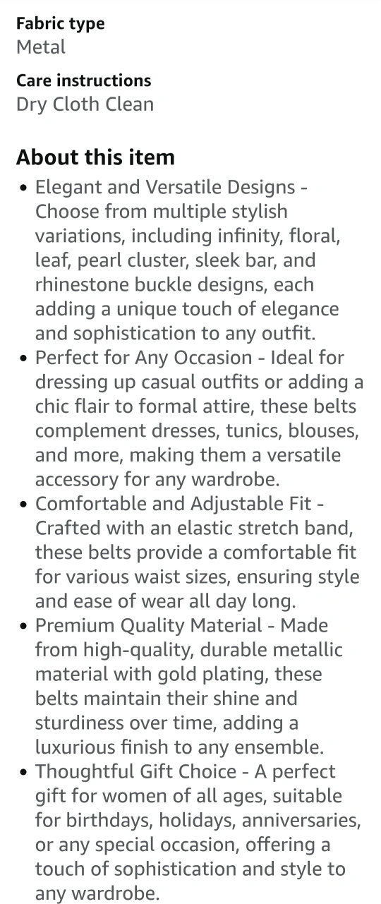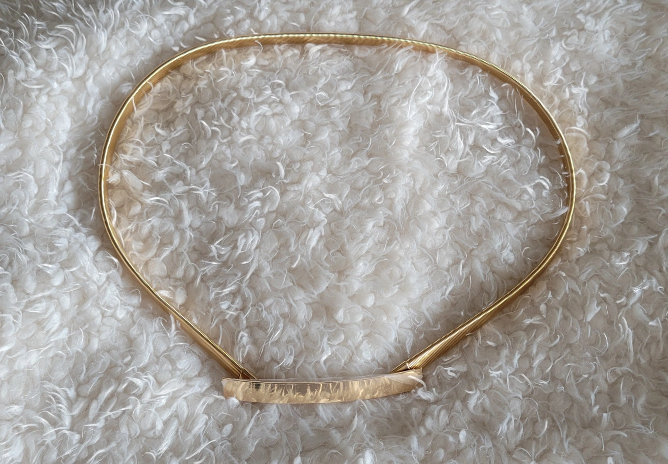 Selling a fashionable metal elastic stretchy chain belt in gold colour! It measures approximately 31 inches. Plastic protector still intact. It's a stylish accessory to add to your wardrobe! Regularly sells for $28.46 +tax on Amazon. Own it for a much lesser price! Check out my other listings and bundle to save. ππ»πΈ Cash and pickup only on Brimley and Eglinton Rd E. in Scarborough.