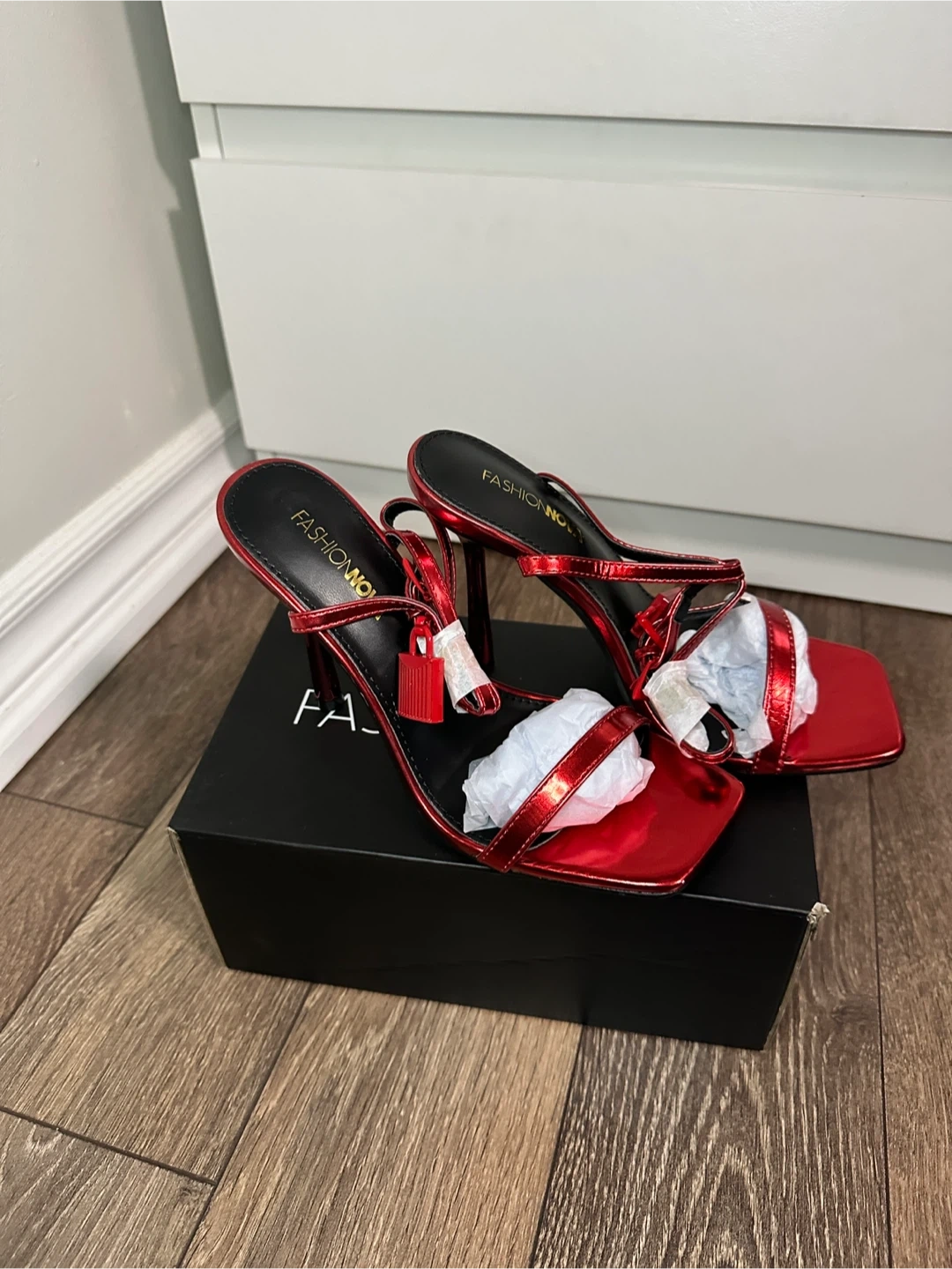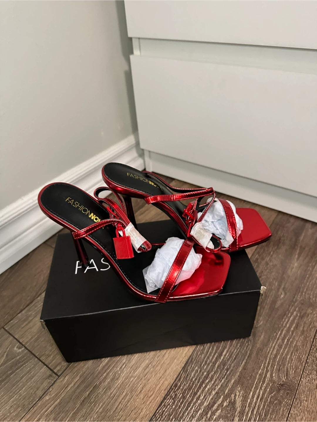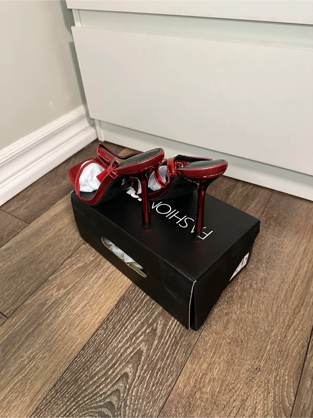 These Fashion Nova black heels are brand new and come in their original box! They feature a sleek, minimalist design with a stiletto heel and delicate straps. Perfect for dressing up any outfit! They’re just too tight for my feet. That’s why I’m selling them.
