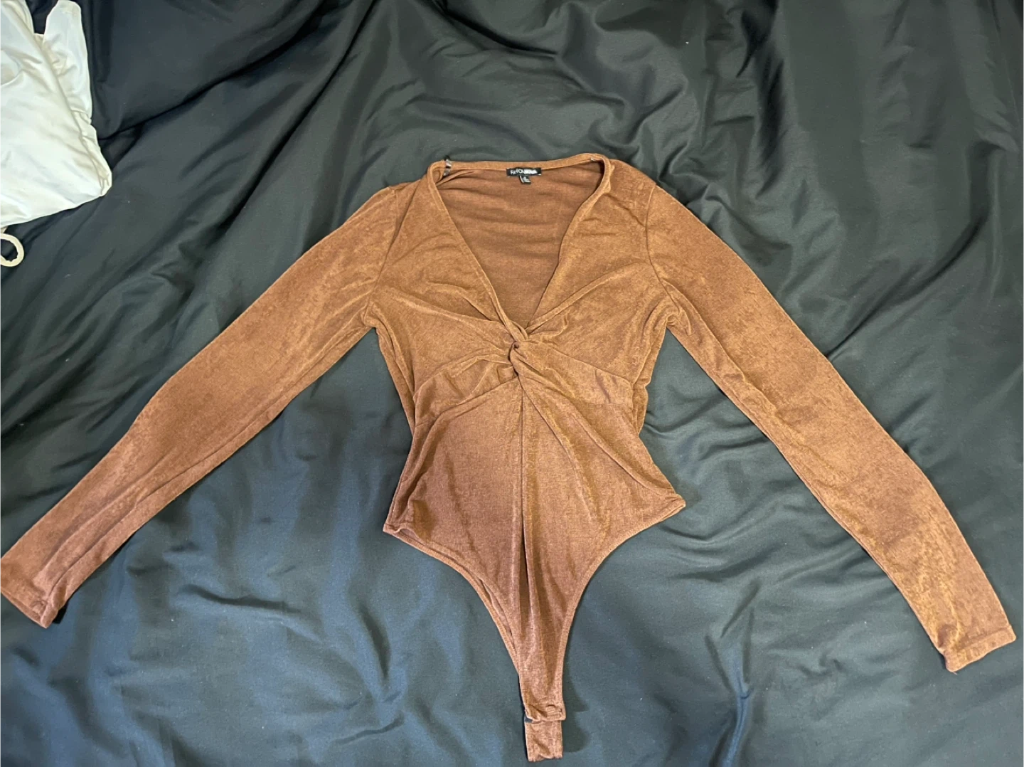 84Selling a brown long-sleeve bodysuit from Fashion Nova. It's a size medium and in great condition! The material is soft and stretchy.
