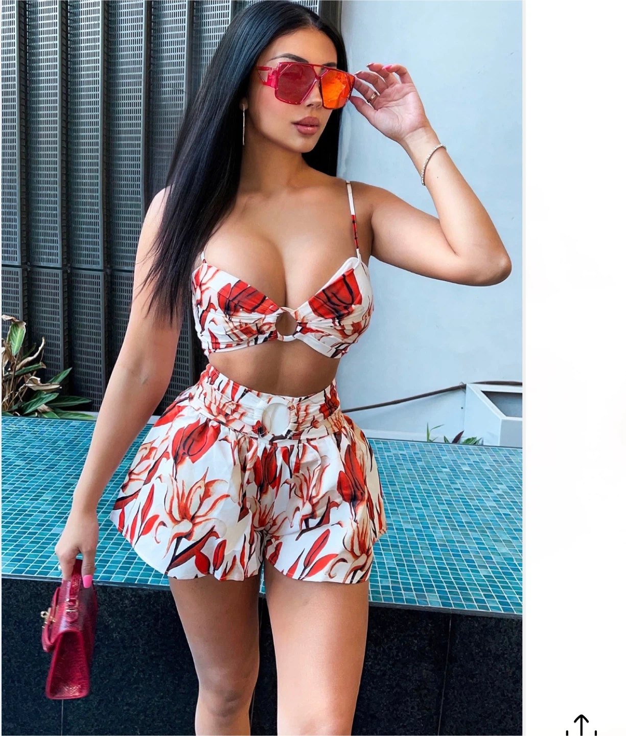 55- Unworn, tags still on ✔️ - SOLD OUT on Fashion Nova right now - Turn heads this season with this gorgeous Delilah Floral Short Set (Orange/Combo). - The top + high-waisted shorts combo is perfect for summer days, vacations, or a fun night out. - Adjustable fit with flattering cut-outs – chic AND comfy!