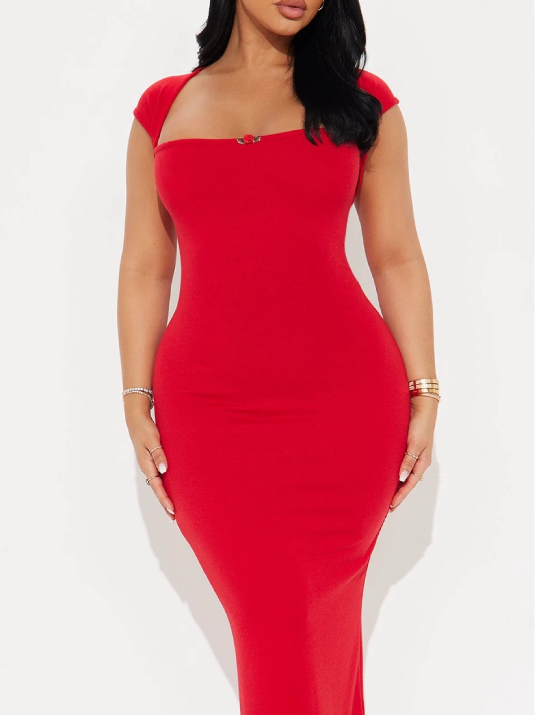 65A stunning red dress from Fashion Nova! Perfect for a night out or special occasion. The dress features a unique neckline and a flattering fit. It's in great condition and ready for a new home