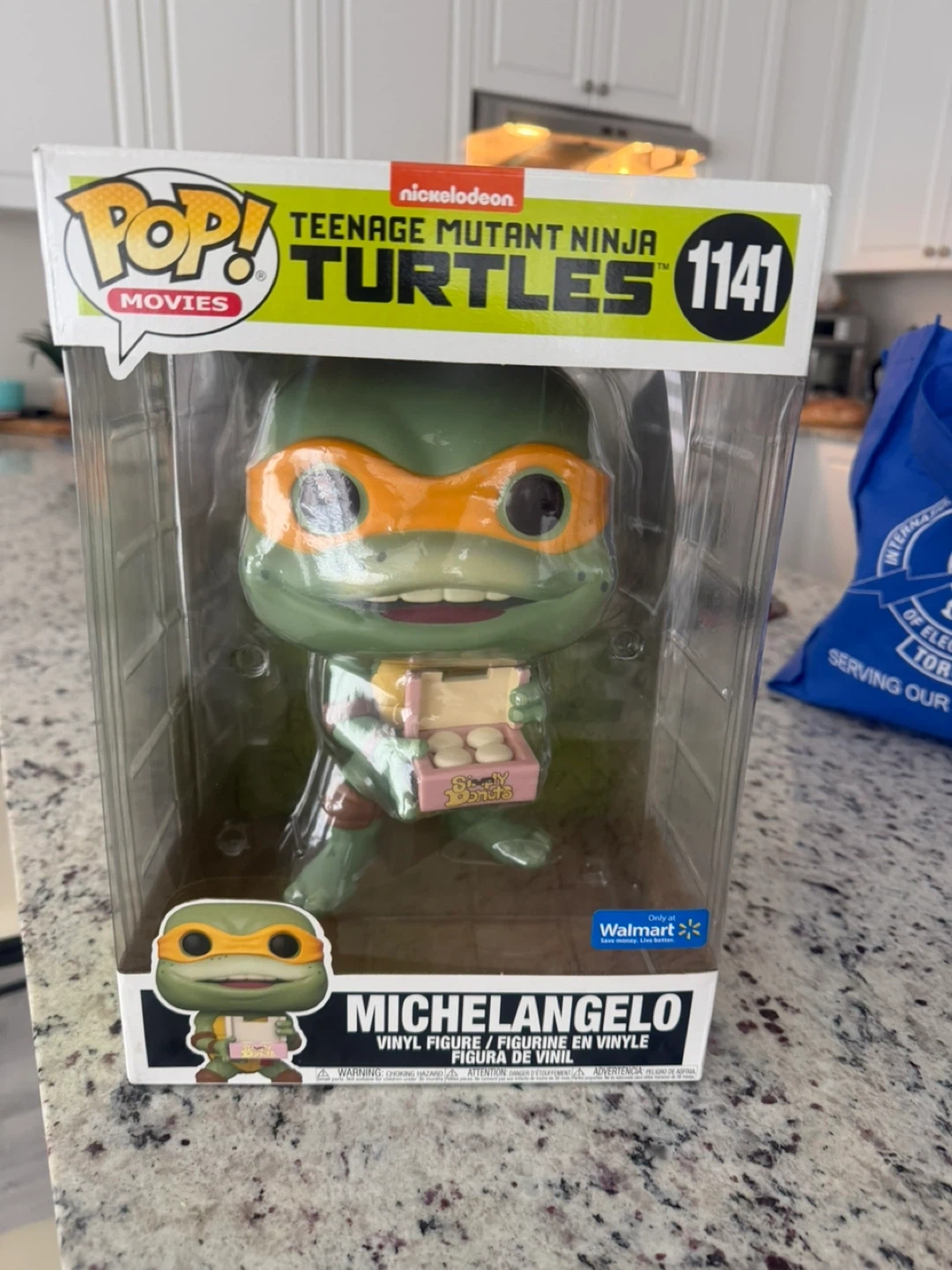 This is a Funko Pop! vinyl figure of Michelangelo from Teenage Mutant Ninja Turtles. It's number 1141 in the Pop! Movies series. The figure comes in its original box. This collectible is great for fans of the TMNT franchise!