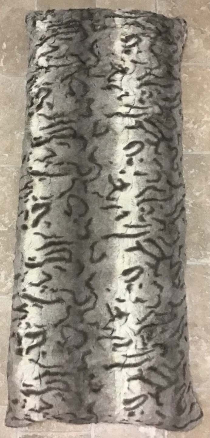 88Selling a comfy faux fur body pillow! It has a unique grey pattern that would look great in any room. Perfect for snuggling up with on the couch or adding extra support in bed. Was sitting in closet with pillow case on it, haven’t used it. As is. Info in photo, same pattern on other side 17 x 43 inches, rough measurements $10.00 exact cash only Pick it up before the rain comes Available 11am to 5pm