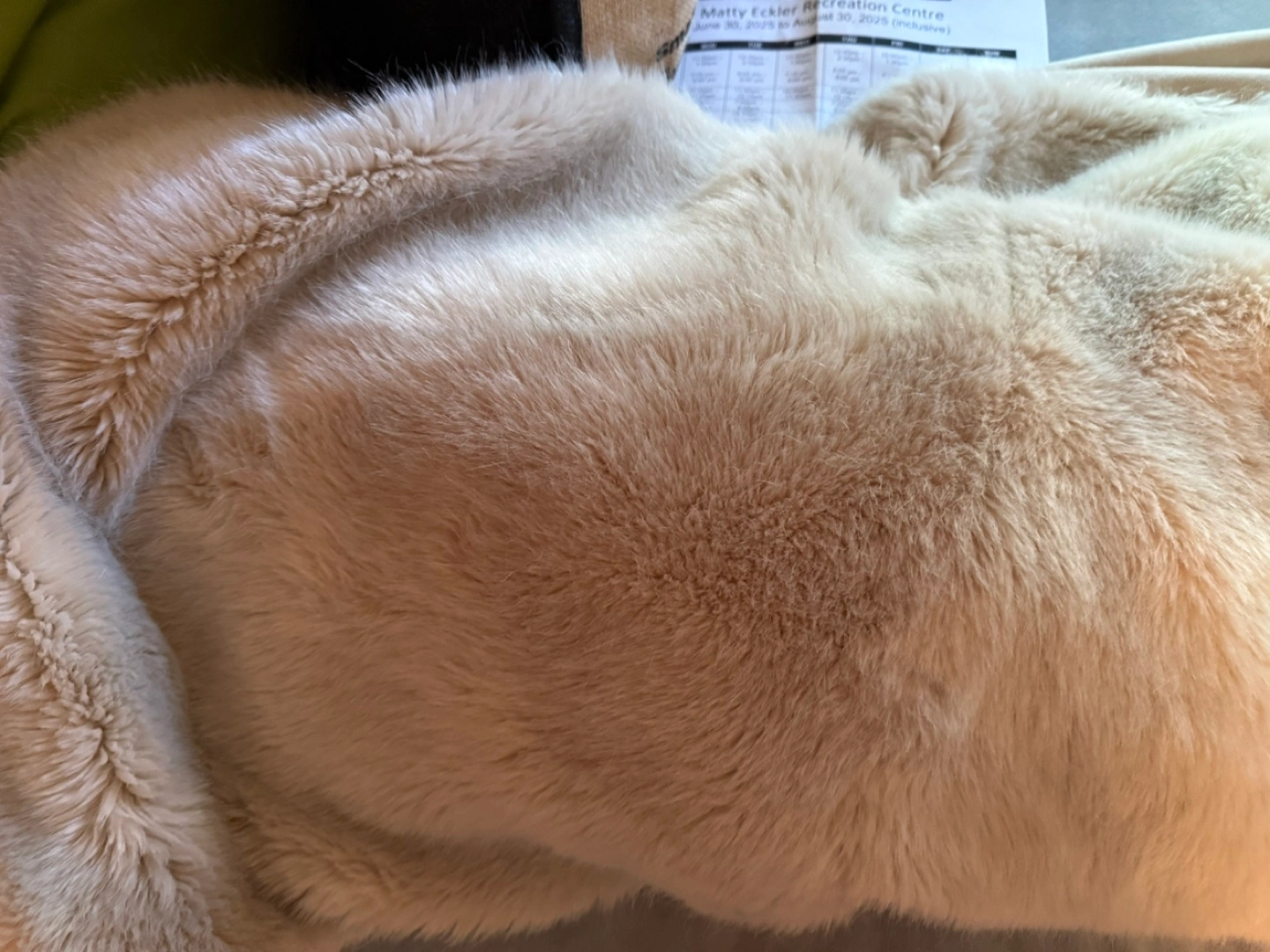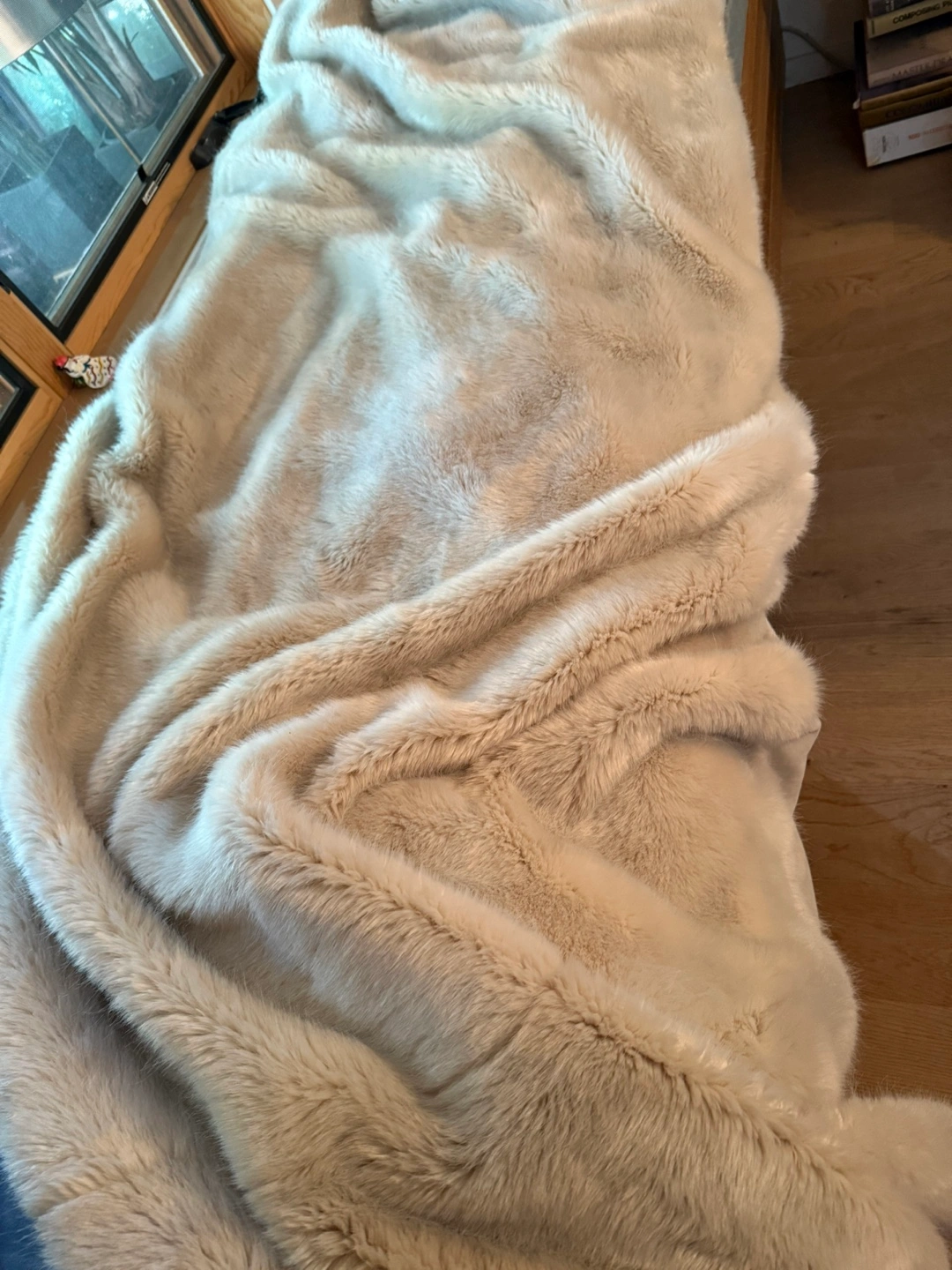 Selling a super cozy faux fur throw blanket! It's a lovely cream colour and in great condition. Perfect for snuggling up on the couch during these chilly evenings