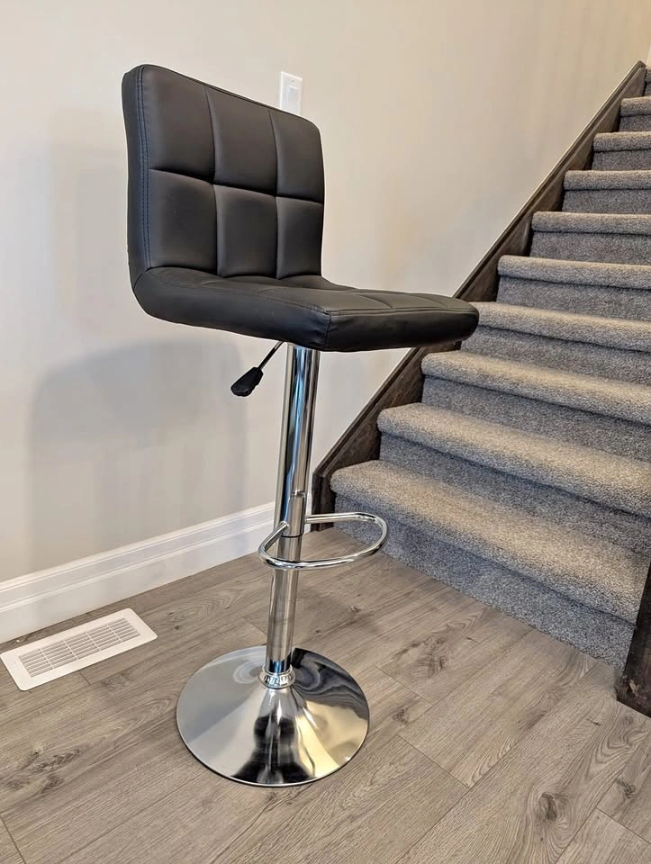 65Faux-Leather Height Adjustable Bar Stool with Metal Base