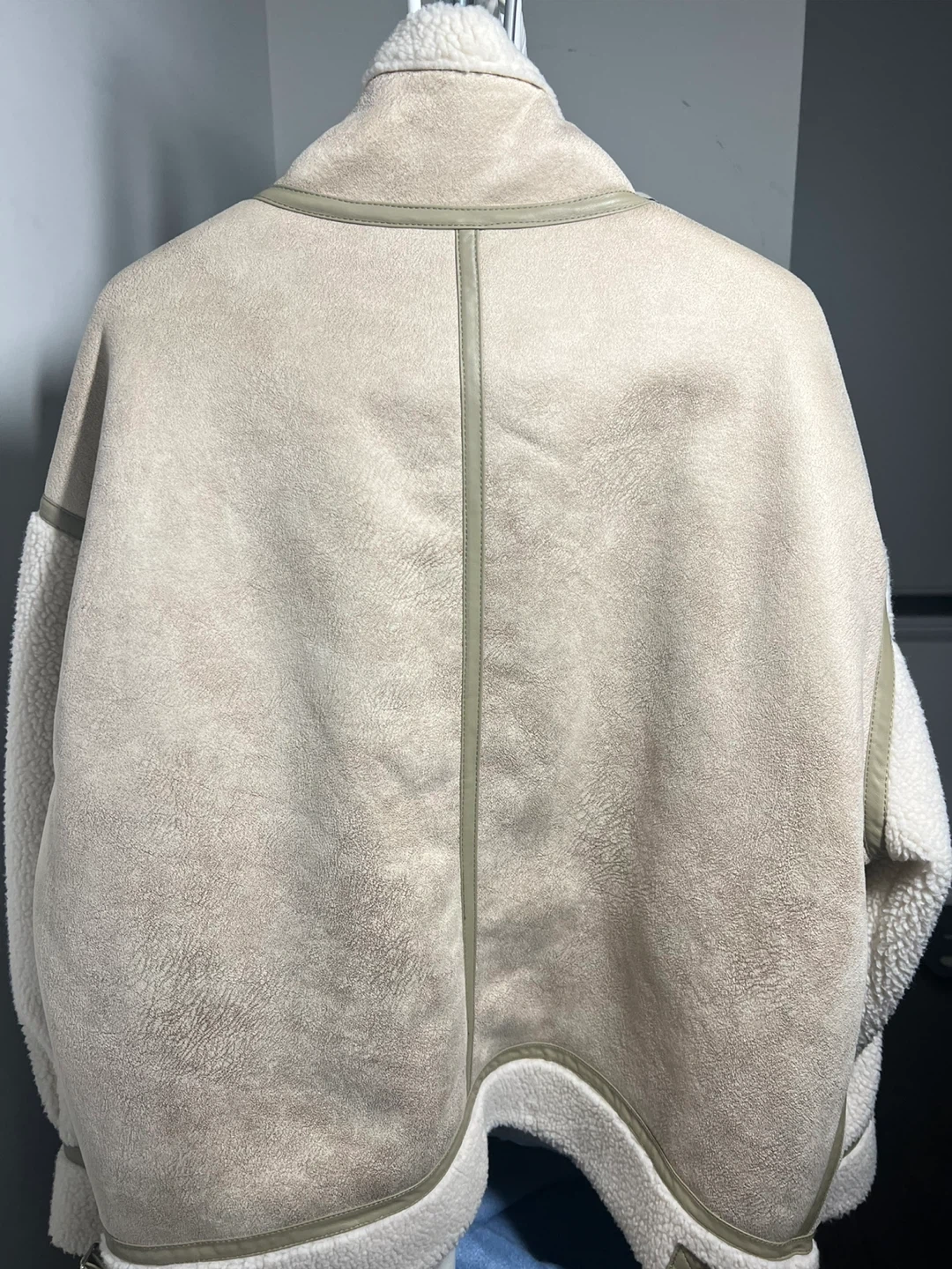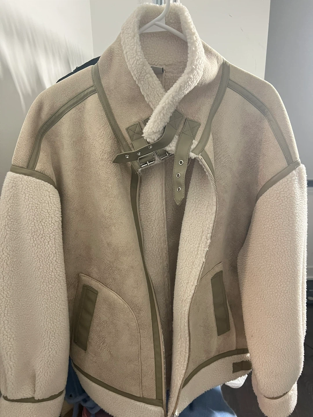 70Cozy up in this jacket! It features a faux suede exterior with shearling lining. Perfect for adding a stylish touch to your outfits. Great condition. Warm and stylish Size M Cash only Pickup only