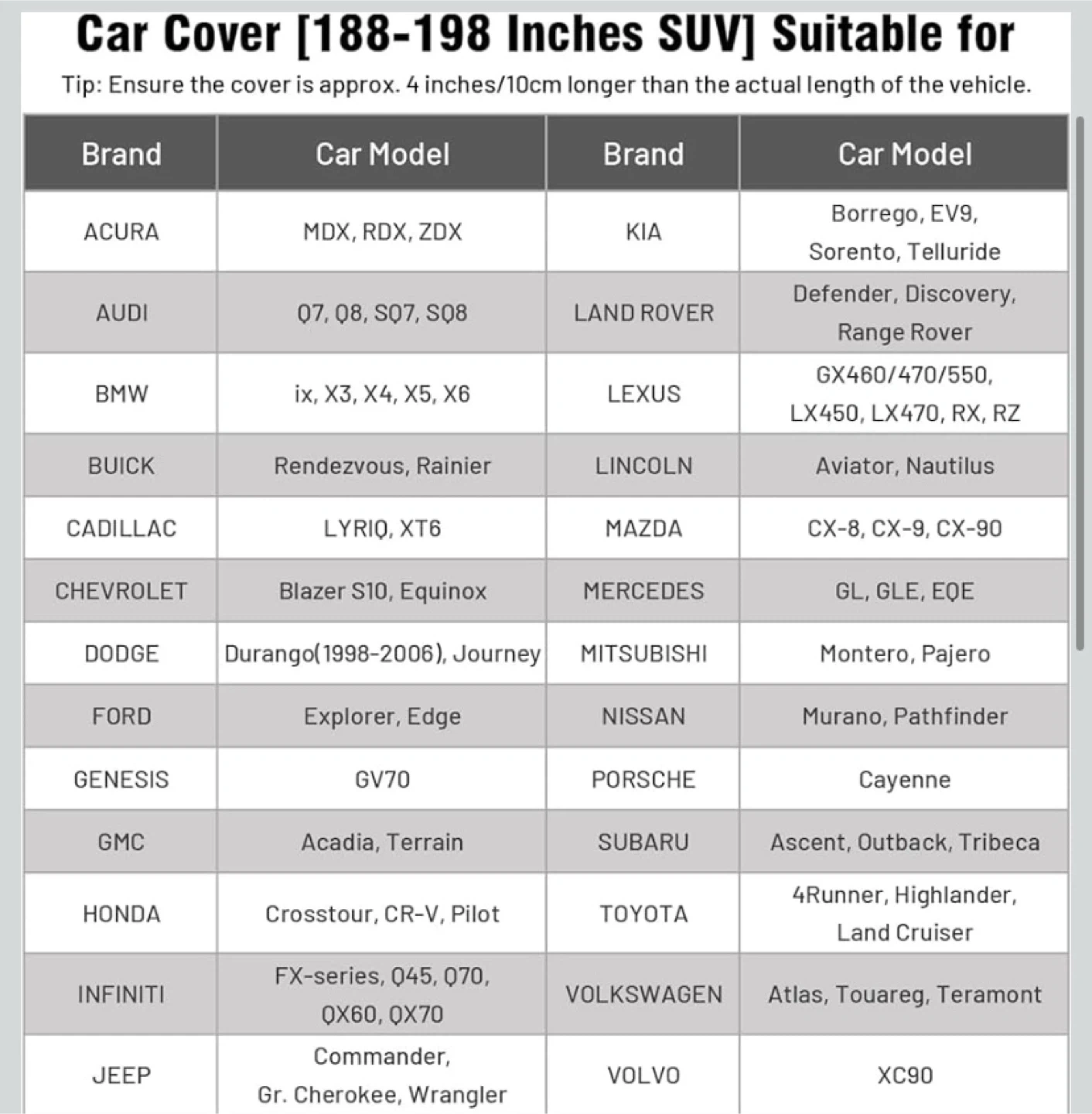 Favoto Universal SUV Car Cover with Side Zipper Fits SUV 188”-198” Excellent condition $20 Pickup in Whitby