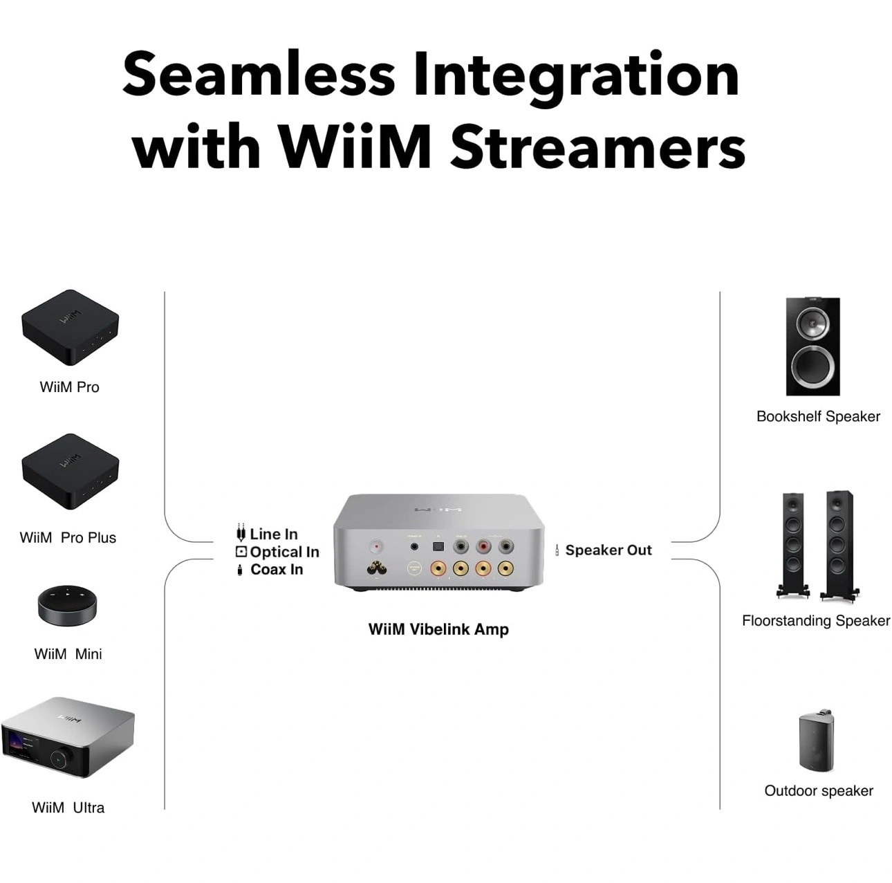 Seamless Integration with WiiM Streamers - Designed for perfect compatibility with WiiM Mini, Pro, Pro Plus, and Ultra, the Vibelink Amp offers low-latency, high-resolution playback for a flawless streaming and audio experience.