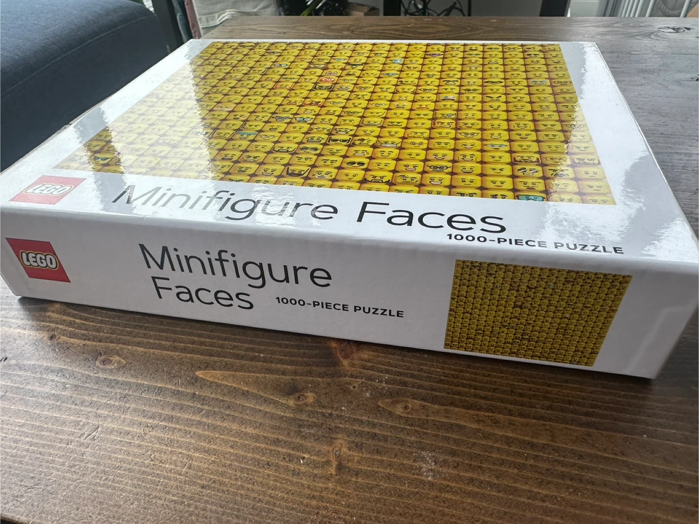 LEGO Minifigure Faces puzzle with 1000 pieces. It's a fun challenge for any LEGO fan. This puzzle is great for display after completion!