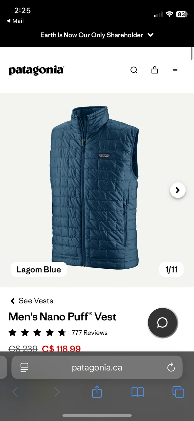 Looking to sell a Patagonia Men's Nano Puff Vest in Lagom Blue, size small. It's a lightweight and portable vest, perfect for layering! Retails for $239.