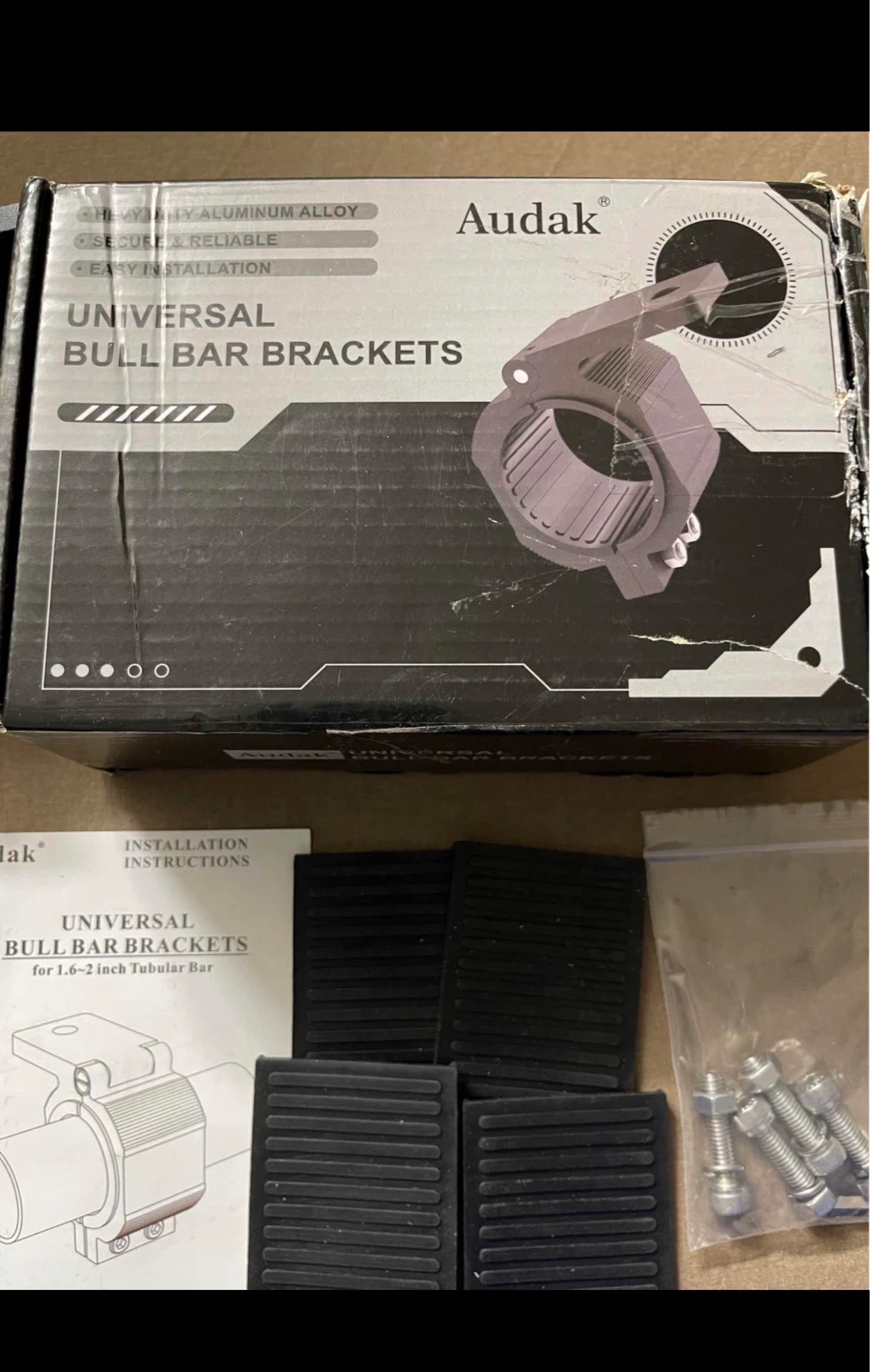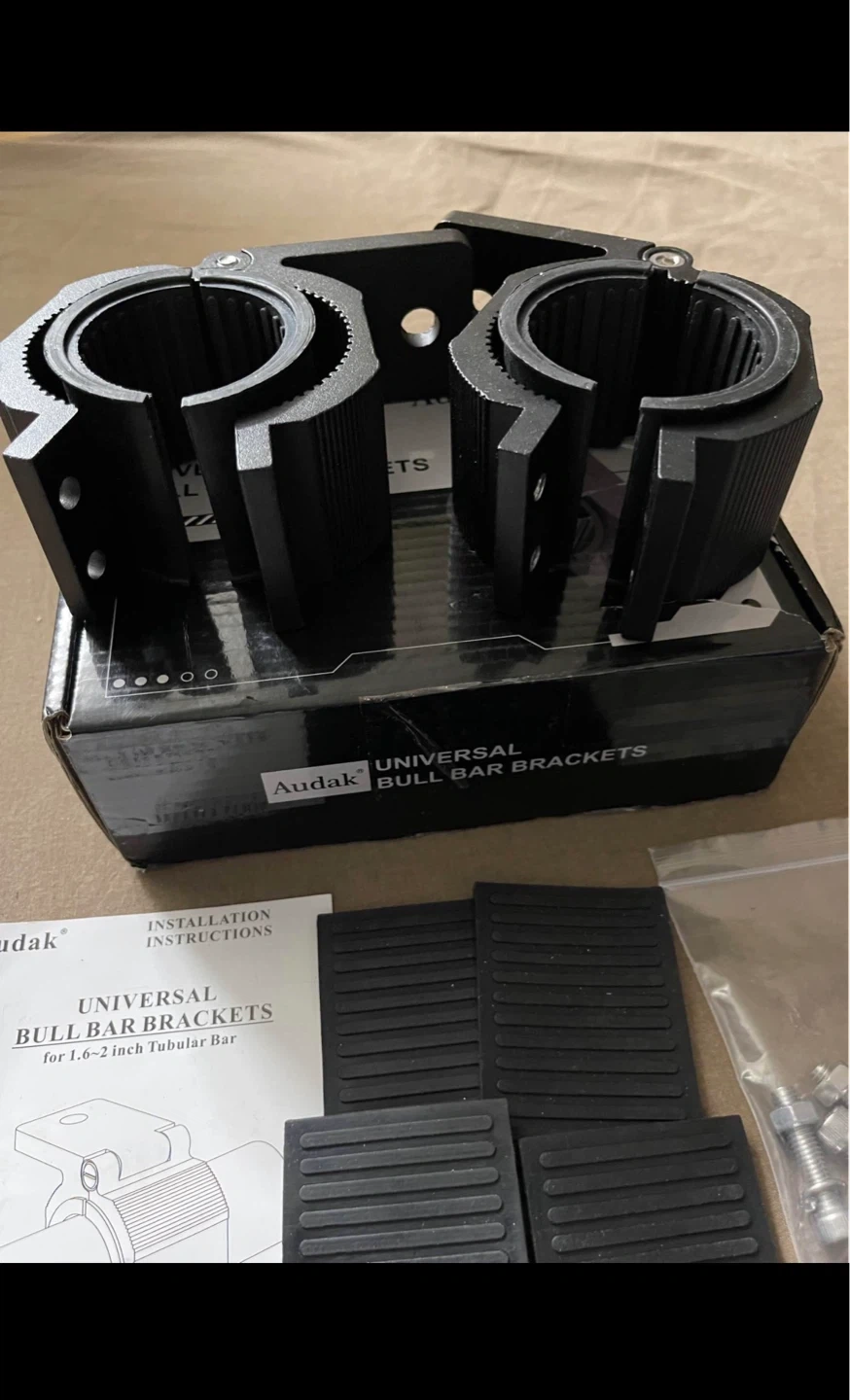 Audak 1 Pair Aluminum Mounting Bracket Kit Tube Clamp for 1.625 1.75 1.875 2 Inch Bullbar Roof Rack Roll Cage Horizontal Bar (1.6 to 2 Inch Adjustable)