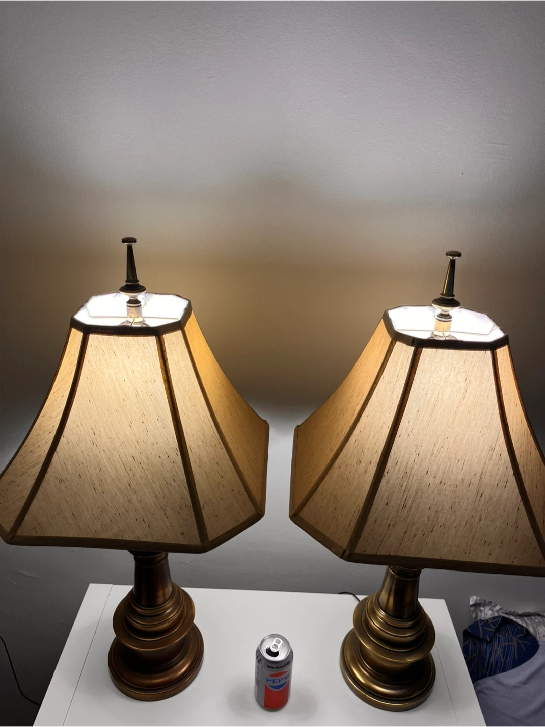 🚚📦 Pair of side lamps. Base is brass and heavy.