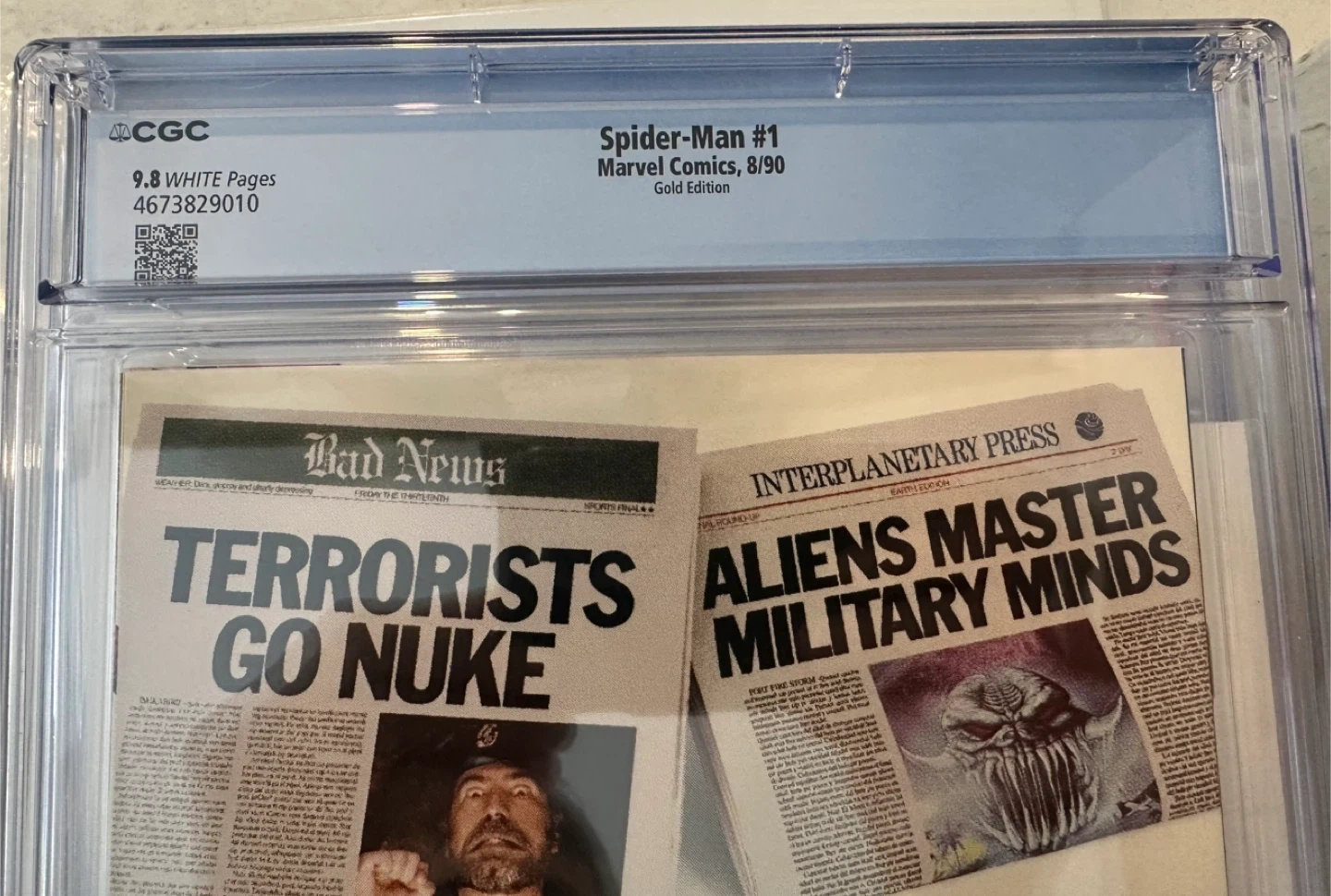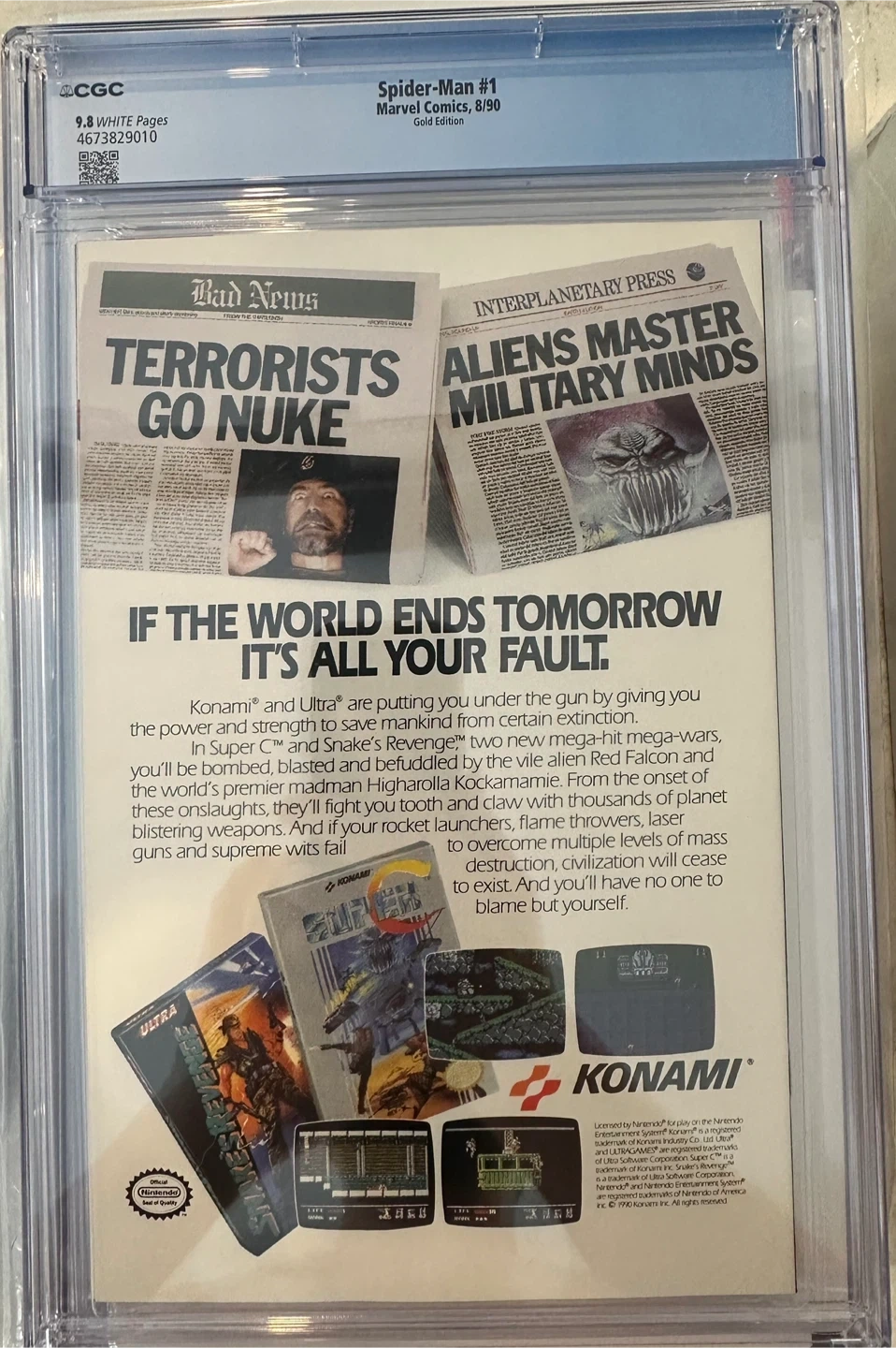 This is a CGC graded Spider-Man #1 Gold Edition comic book, graded 9.8. It features Todd McFarlane's story and art. This 1st all-new collector's item issue is from Marvel Comics, 8/90. It's the "Second Printing".