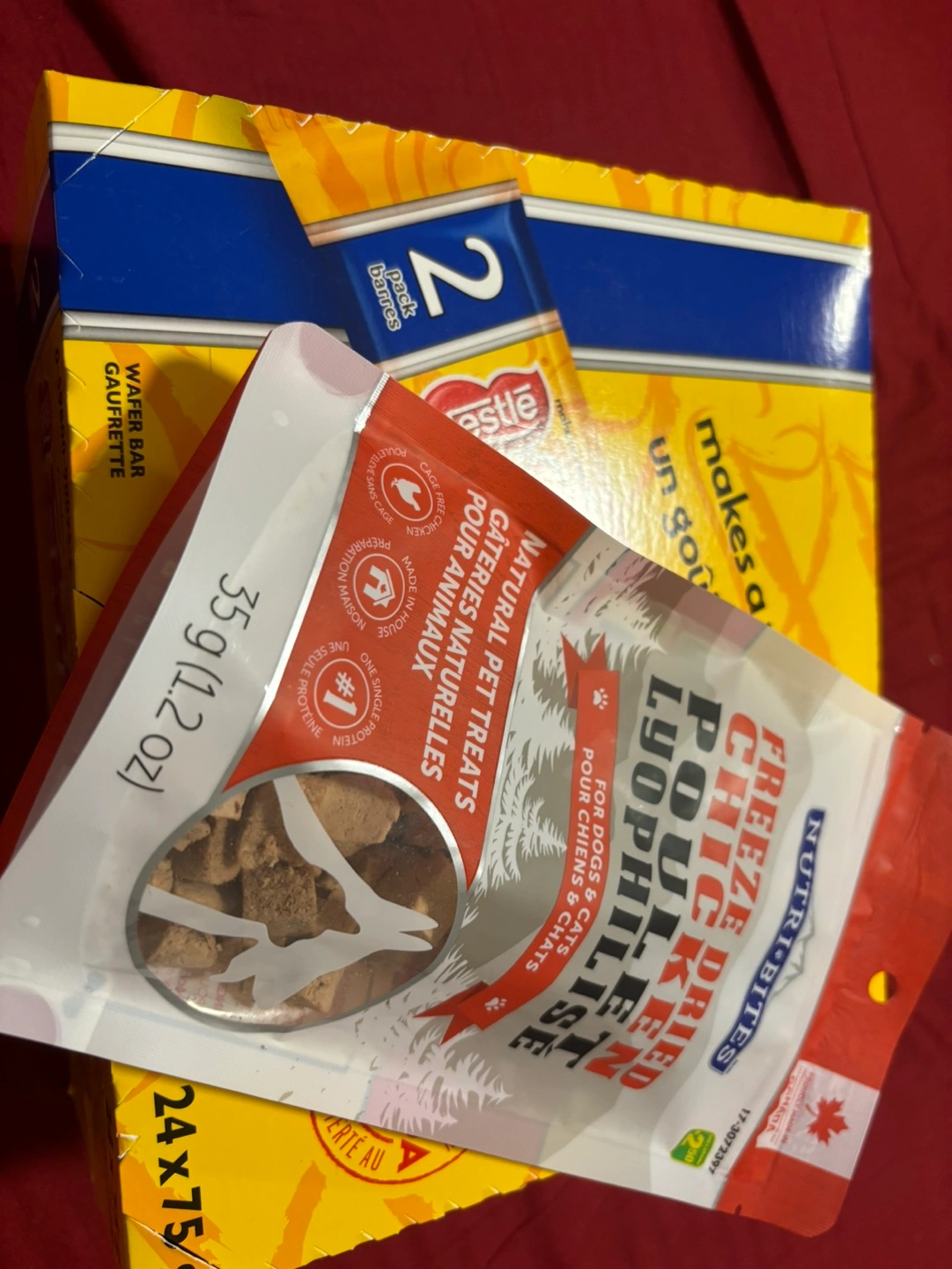 Freeze dried chicken dog and cat treats. Natural pet treats made in house. Cage free chicken. For free with chocolate box
