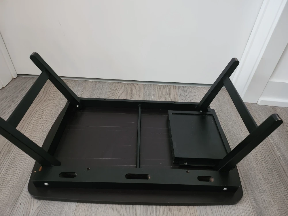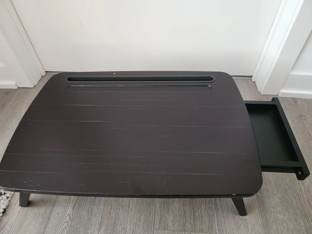 Selling a handy black bed desk! It has folding legs for easy storage and a little drawer on the side. Great for working or enjoying breakfast in bed