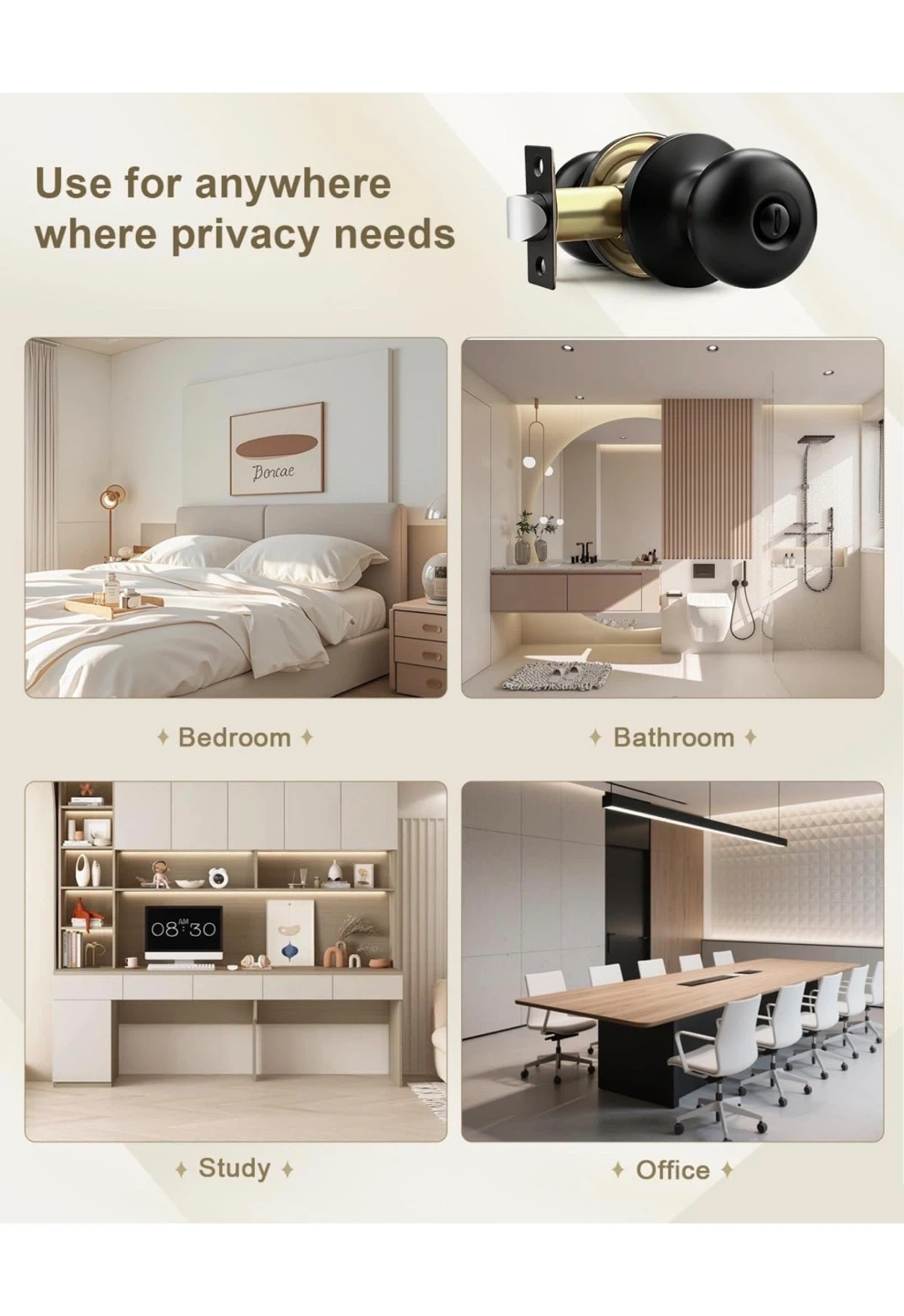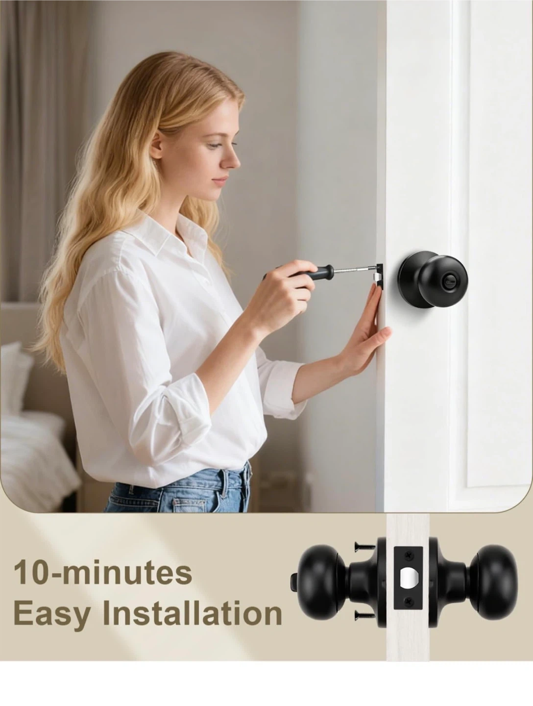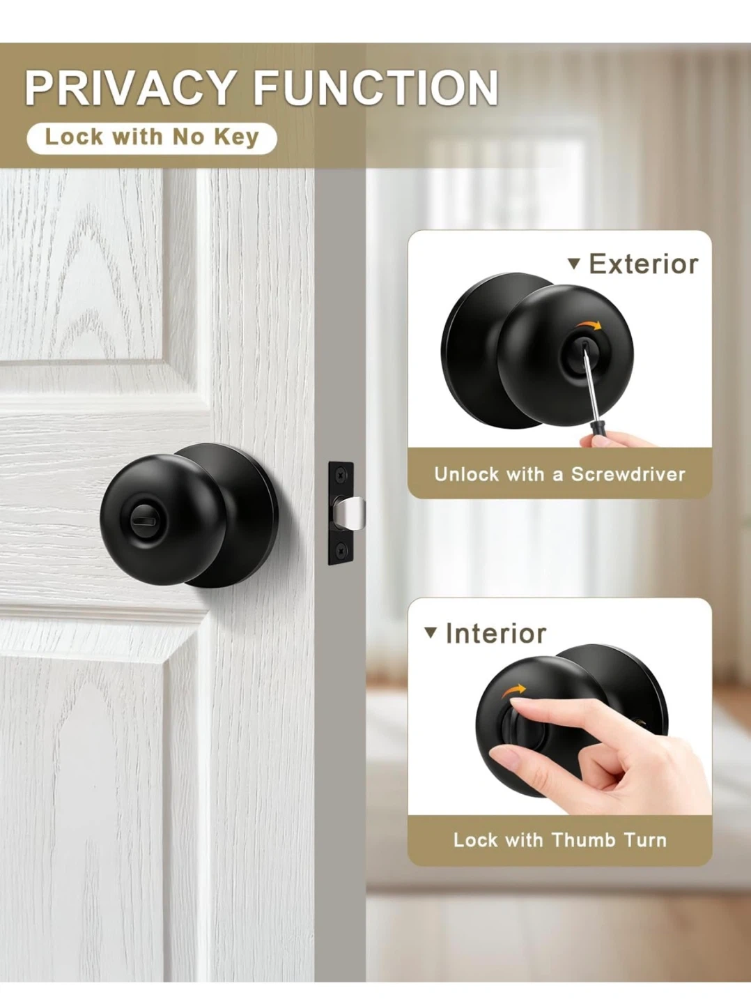 6 Pack Matte Black Privacy Door Knobs with Lock