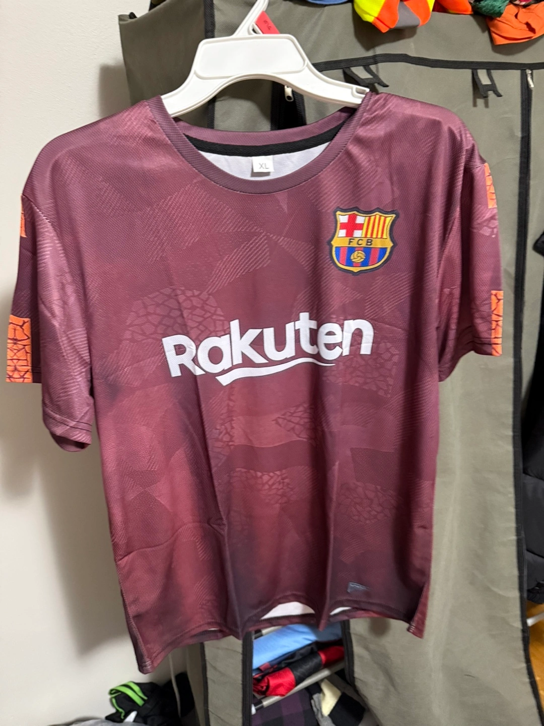 Selling a FC Barcelona Rakuten jersey in size LARGE. It's in great condition and ready for a new fan! The jersey features the classic Barcelona colours and the Rakuten logo, perfect for showing your support. ITS REPLICA AND SIZE LARGE